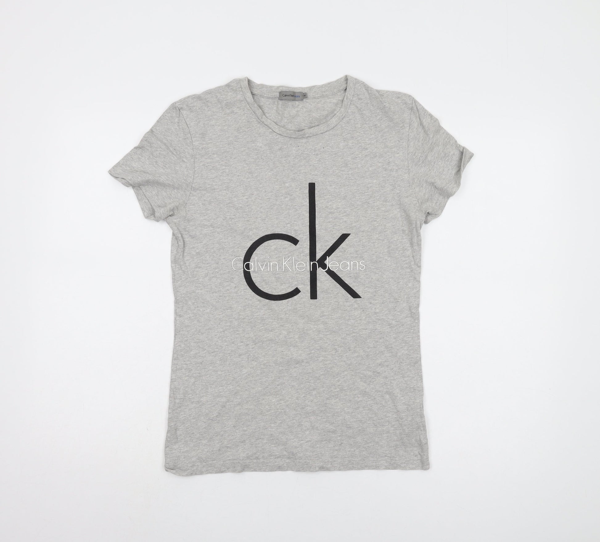 Calvin Klein Women's Grey Basic T-Shirt, Size M, Casual Wear