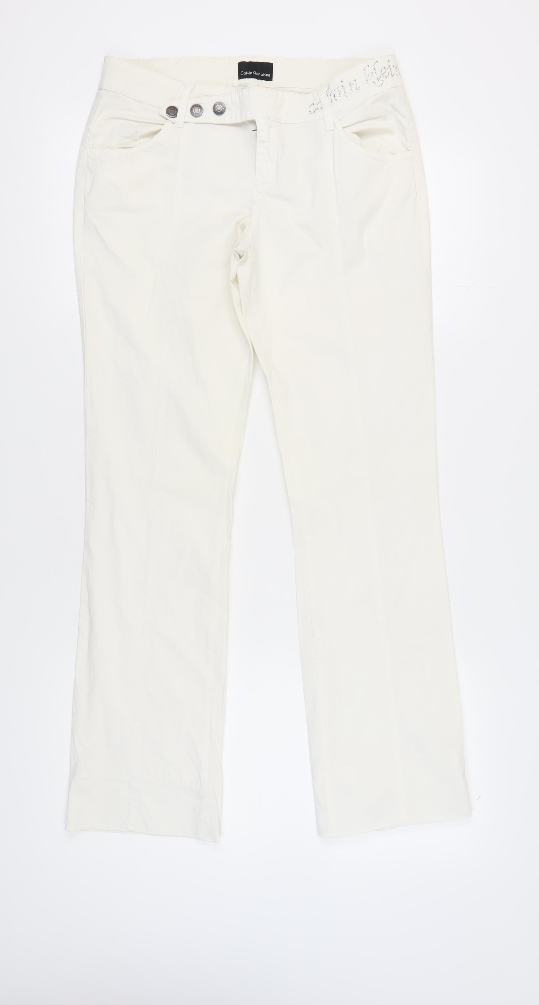 Calvin Klein Women's Ivory Cotton Trousers, Size 31