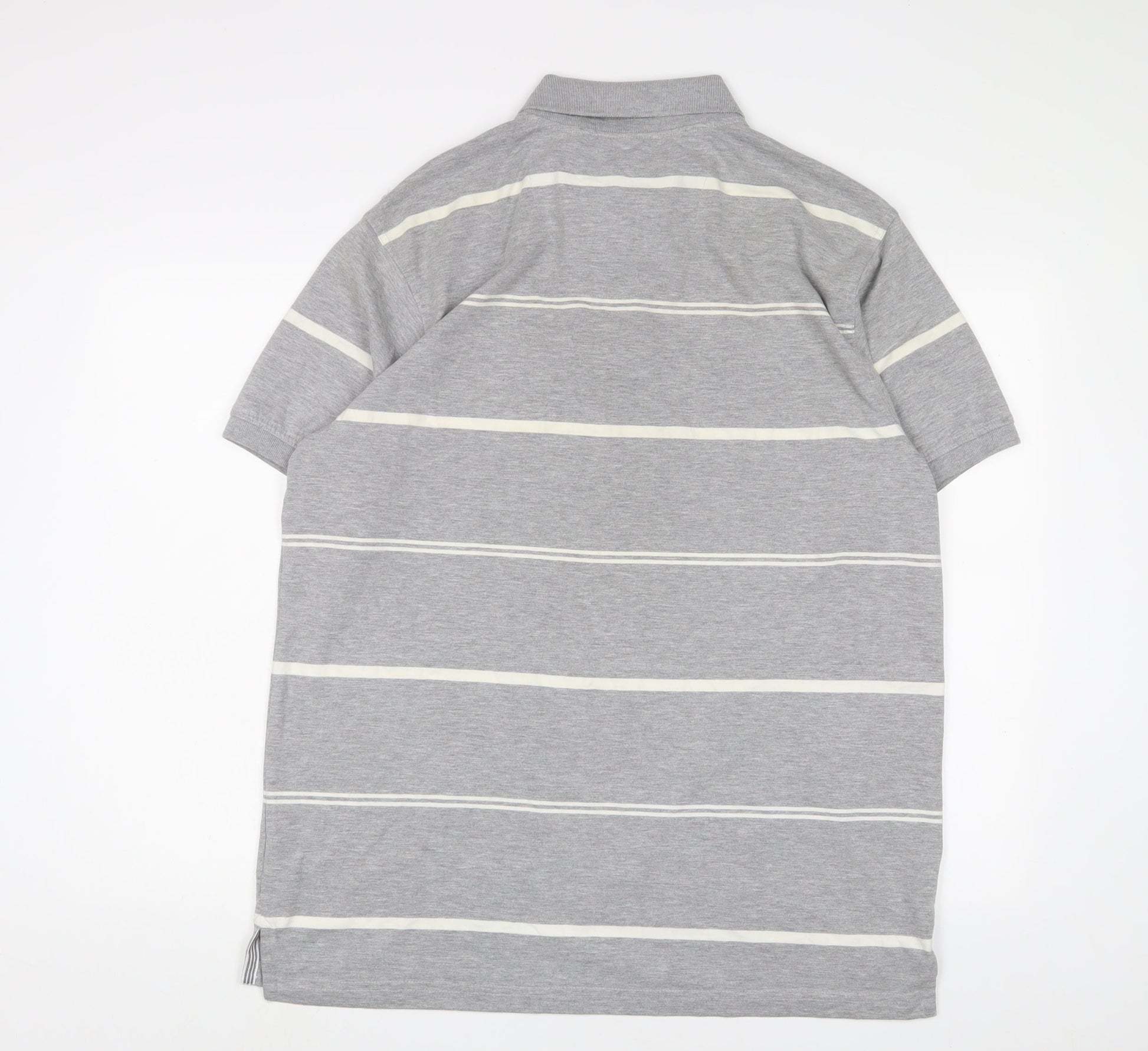 Camel Active Mens Grey Striped Cotton Polo Size 2XL Collared Button - Logo, Embroidered
