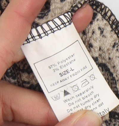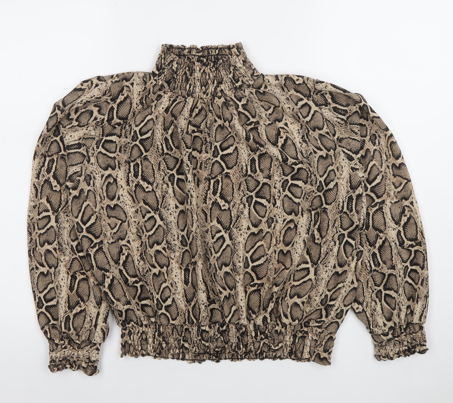Cameo Rose Women’s Beige Animal Print Puff Sleeve High Neck Blouse Size L