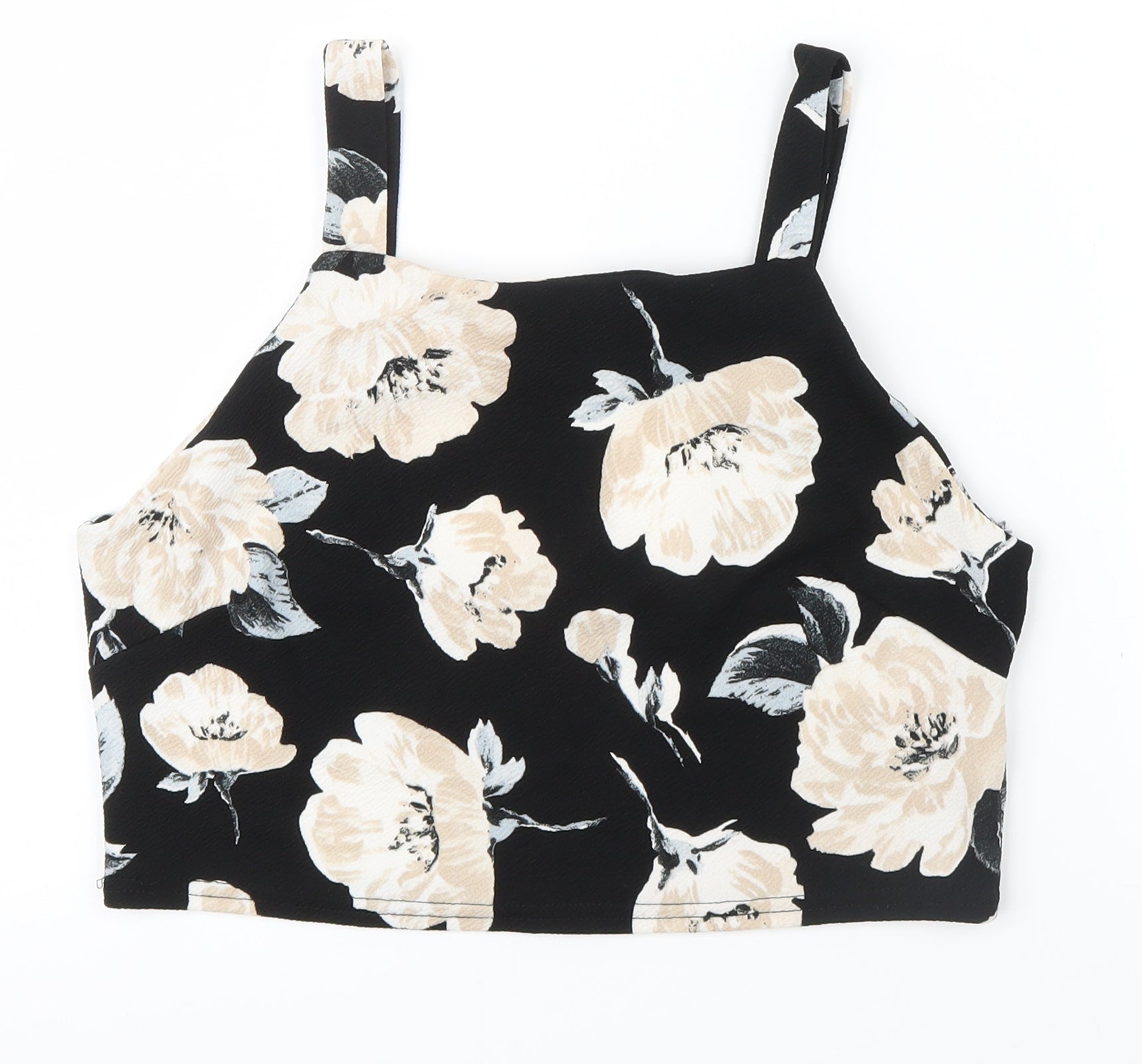 CAMEO ROSE Womens Black Floral Basic T-Shirt Size 14