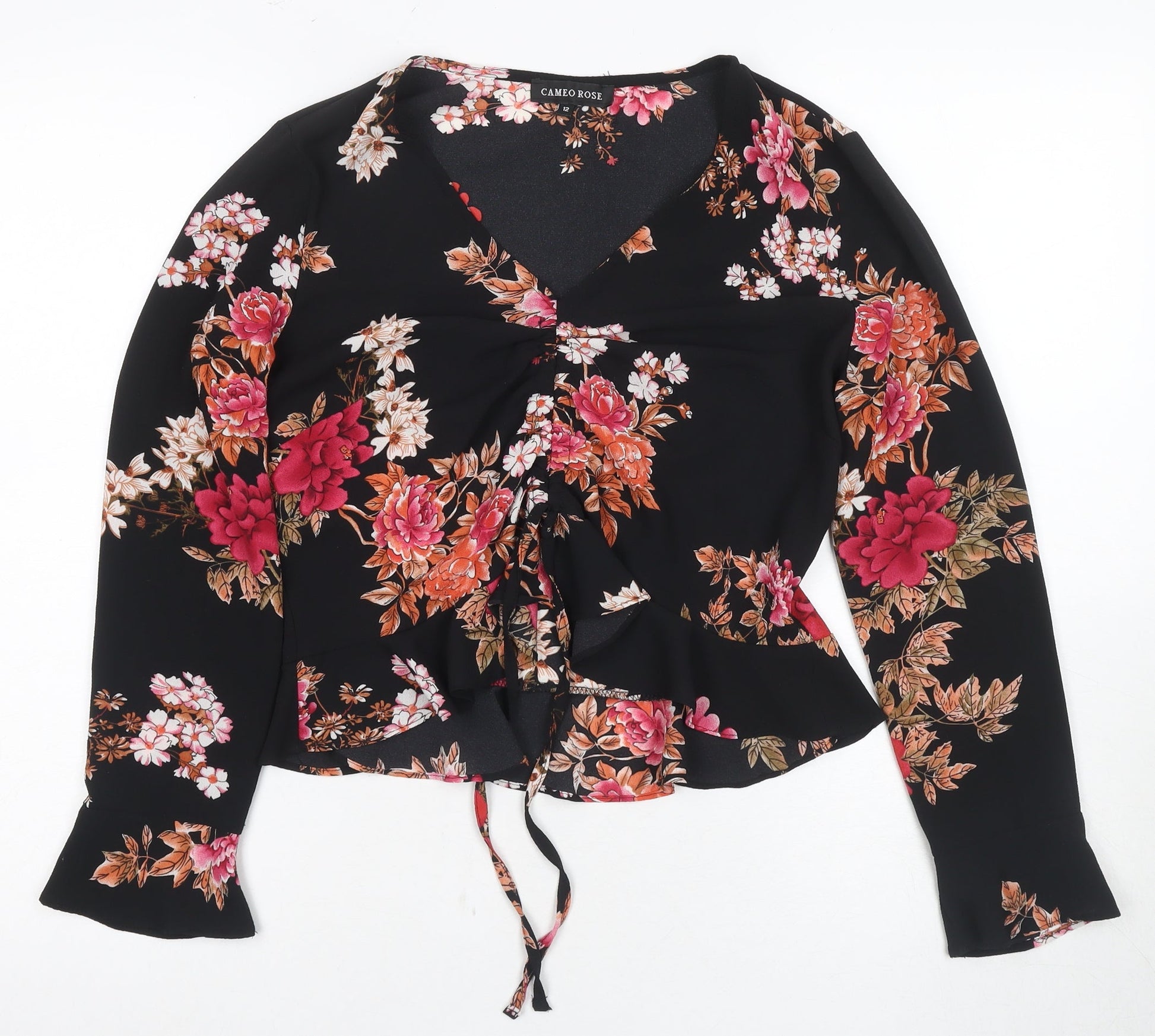 Cameo Rose Women's Floral Wrap Blouse, Size 12, Black