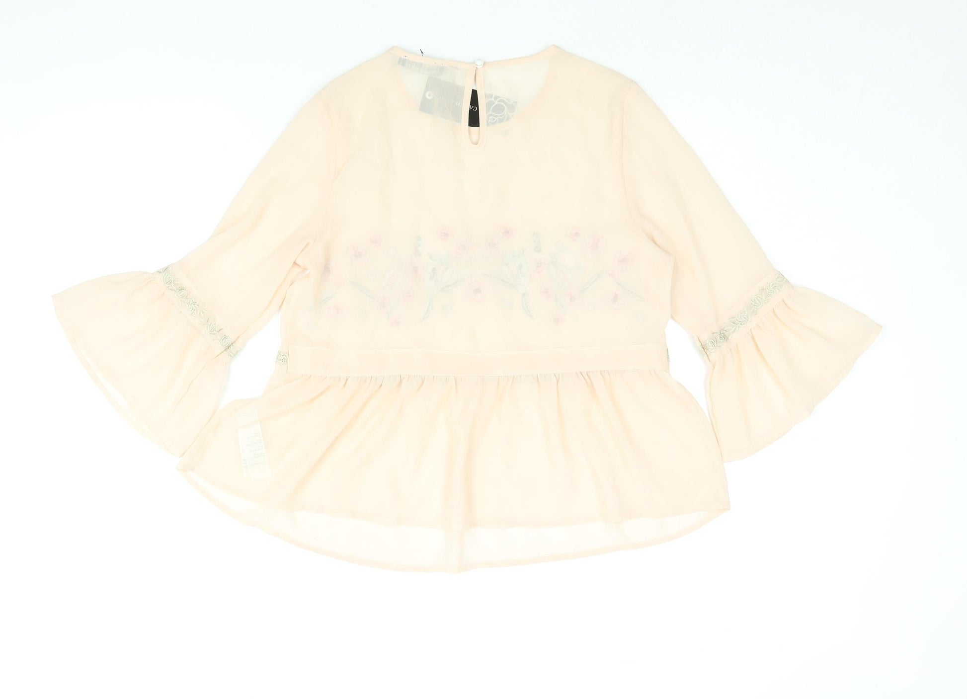 Cameo Rose Womens Pink Polyester Basic Blouse Size 10 Round Neck - Semi Sheer Floral Embroidery