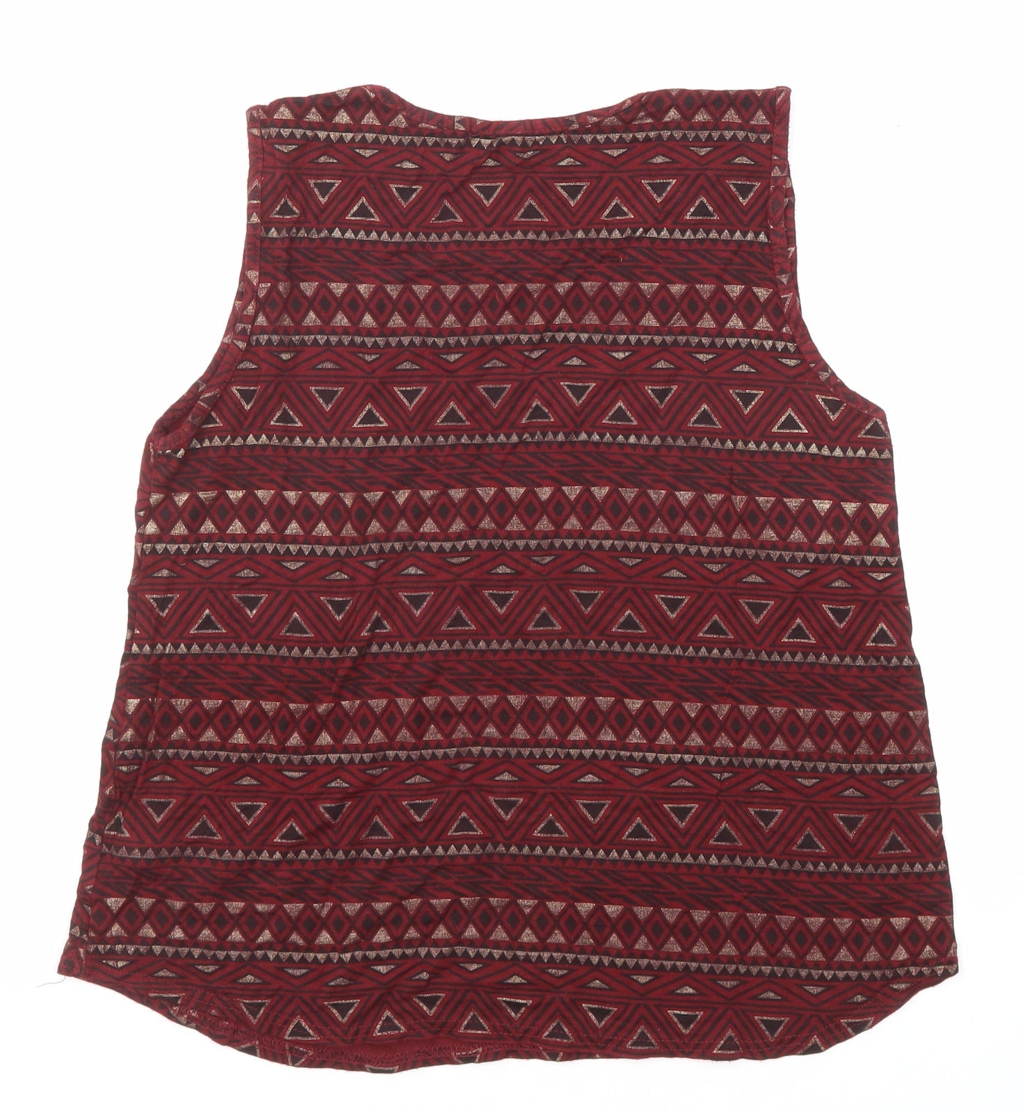 Cameo Rose Womens Red Geometric Viscose Basic Blouse Size L Round Neck
