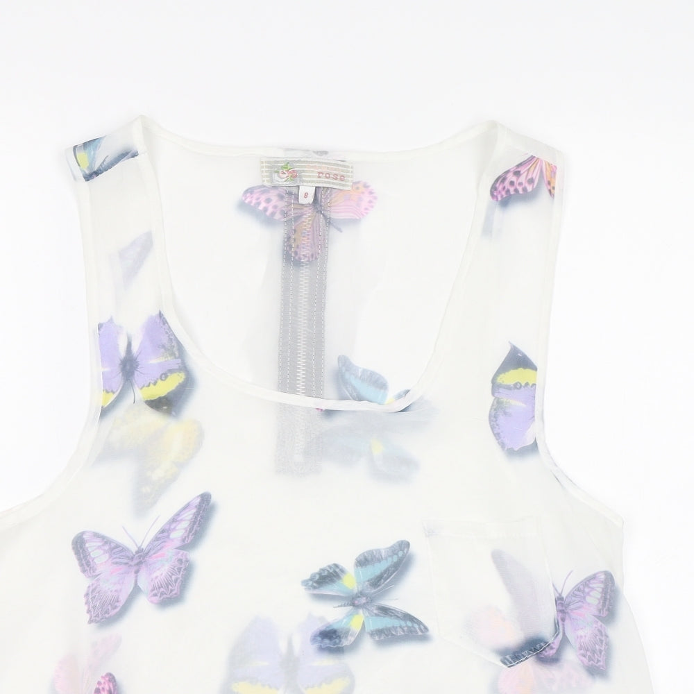 Cameo Rose Womens White Basic Tank Size 8 - Butterflies