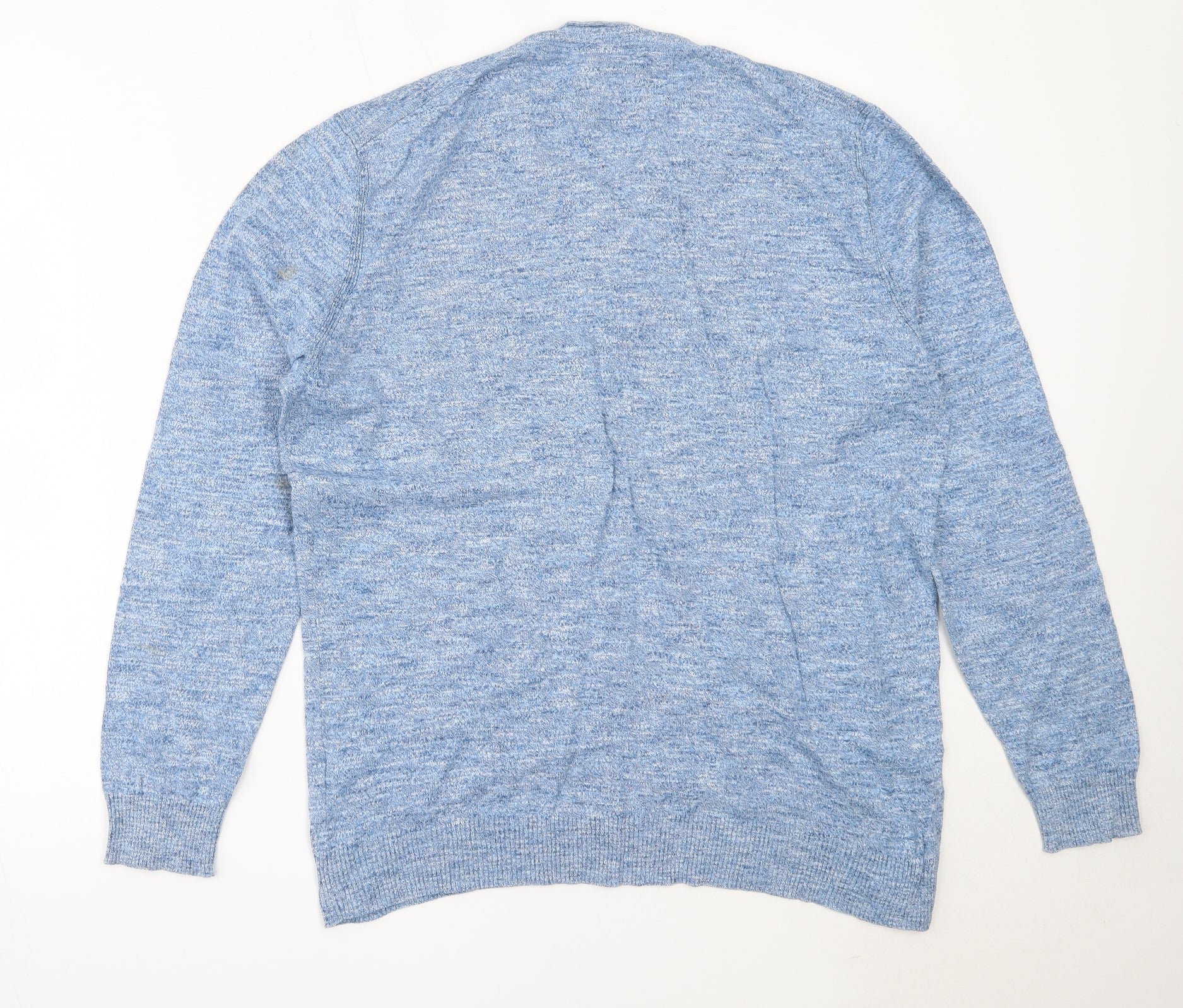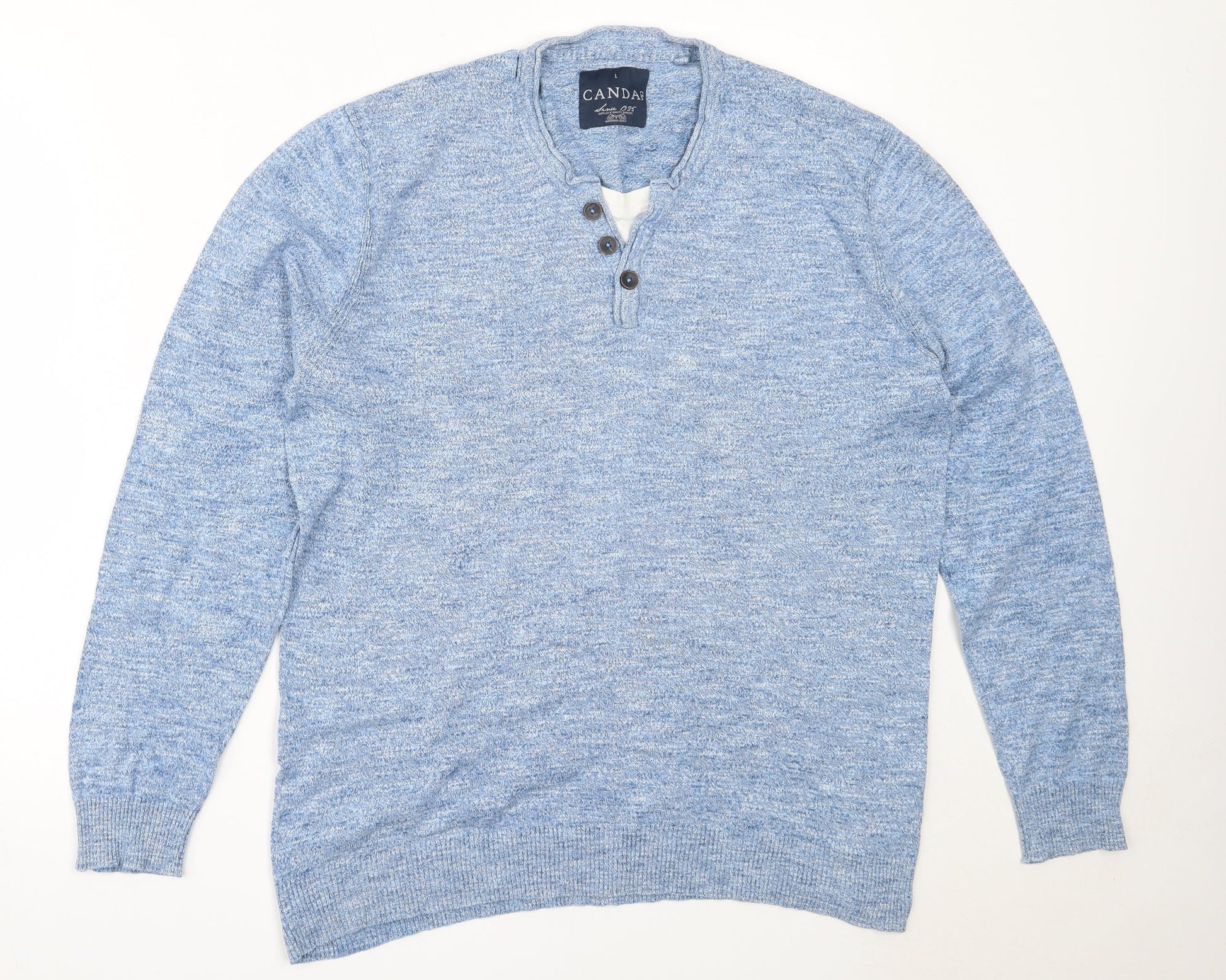 CANDA Mens Blue V-Neck Cotton Pullover Jumper Size L