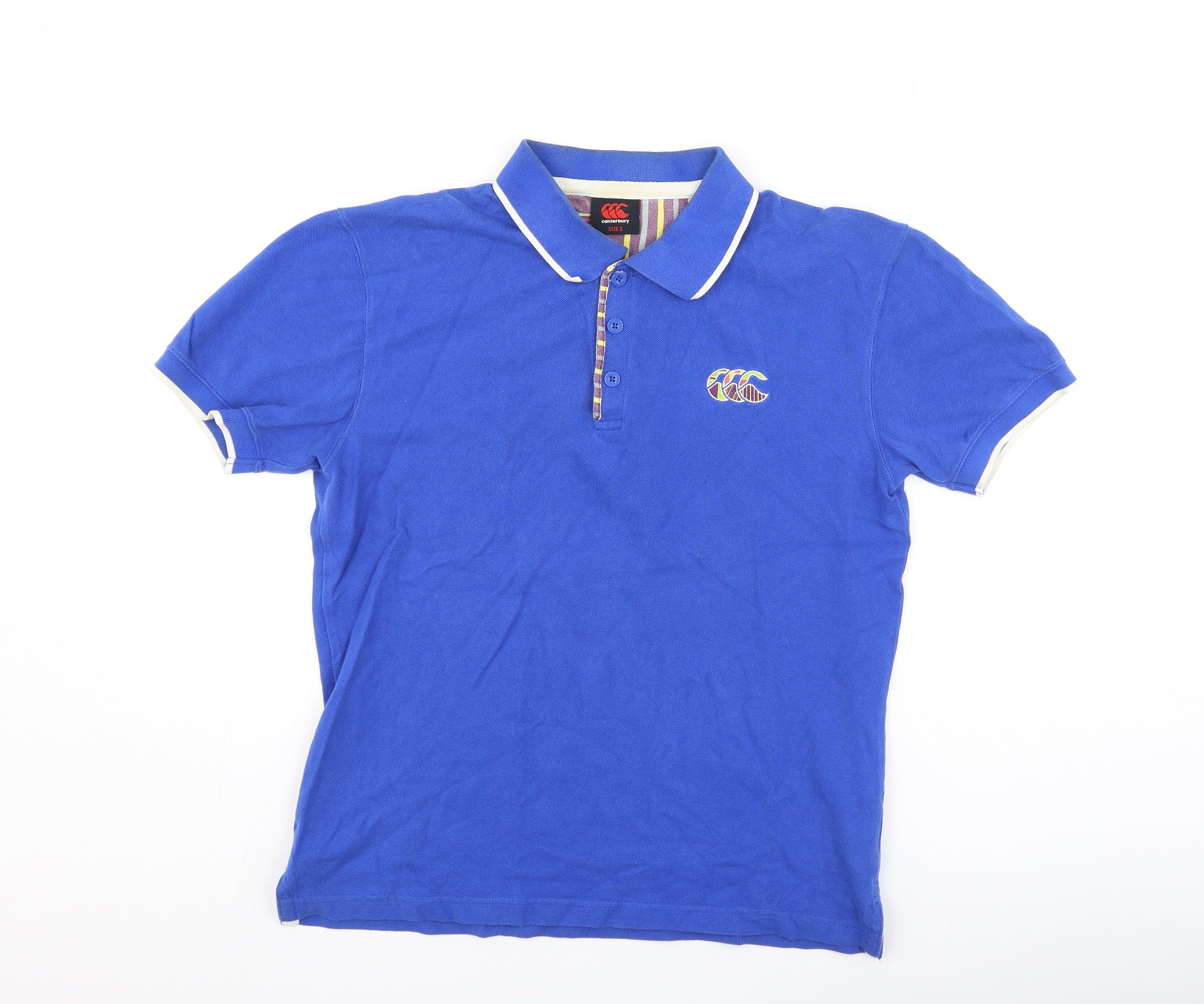 Canterbury Mens Blue Cotton Polo Size S Collared