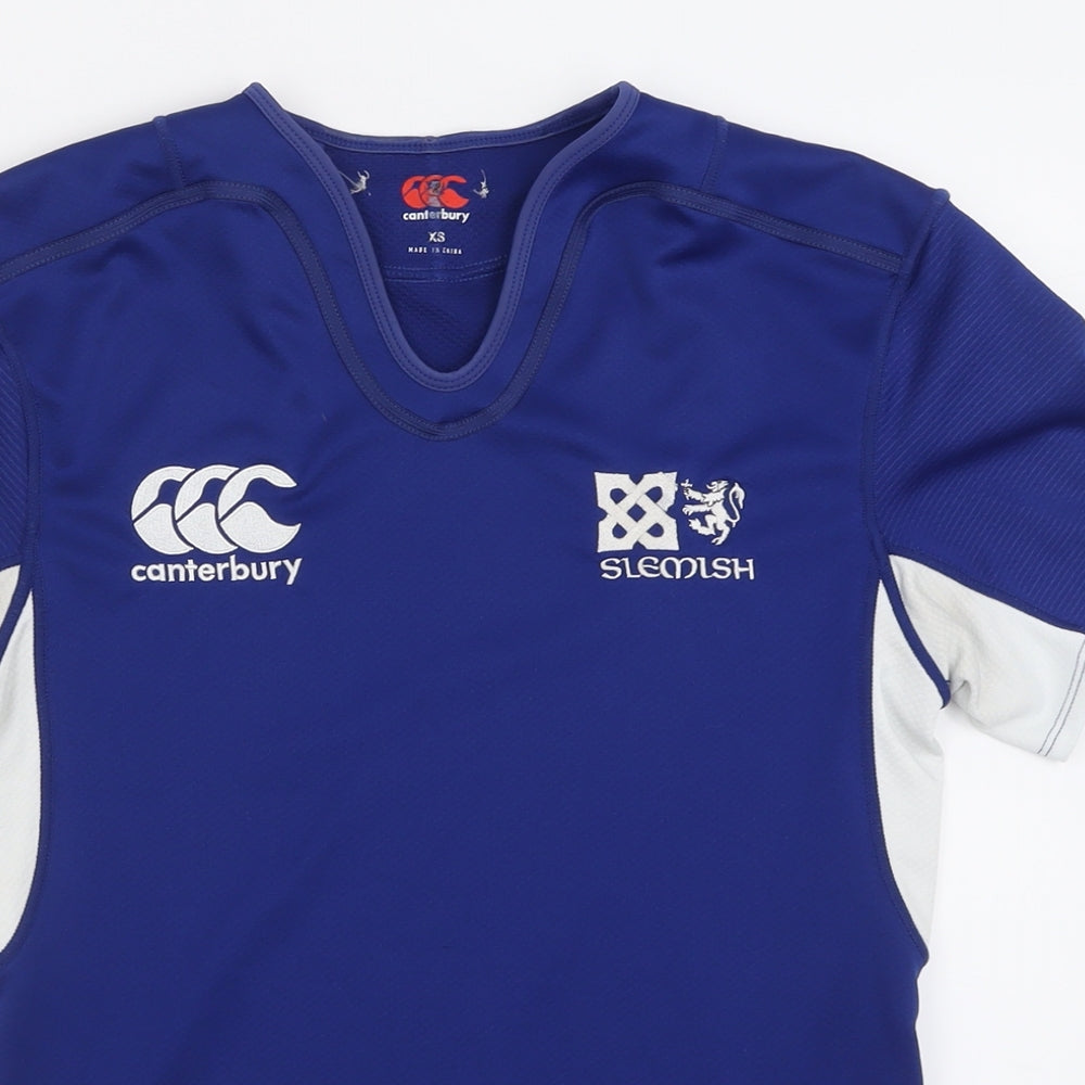 Canterbury Mens Blue Polyester Basic T-Shirt Size XS V-Neck Pullover