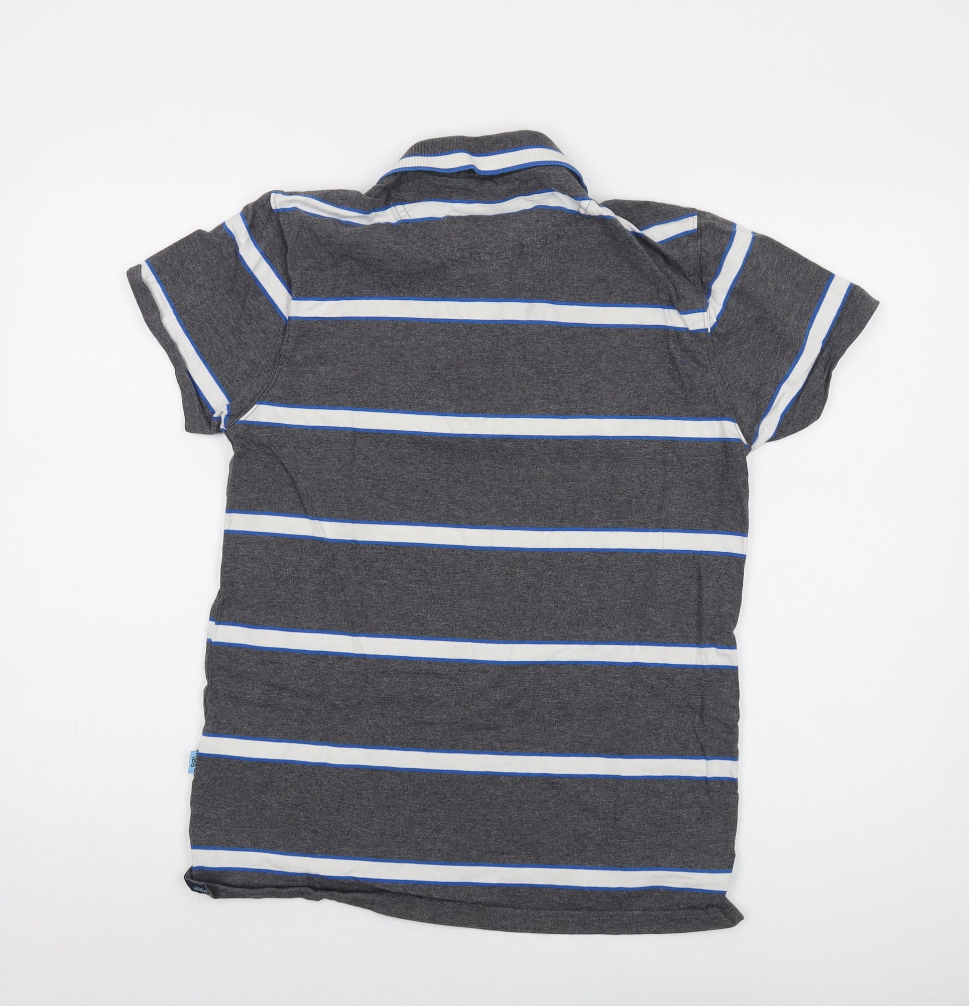 Canterbury Mens Grey Striped Cotton Polo Size S Collared Button - Rugby World Cup 2015