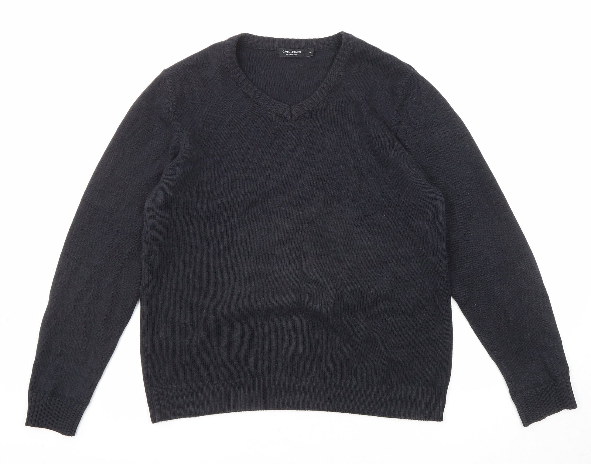 Capsule Mens Black V-Neck Cotton Pullover Jumper Size S Long Sleeve