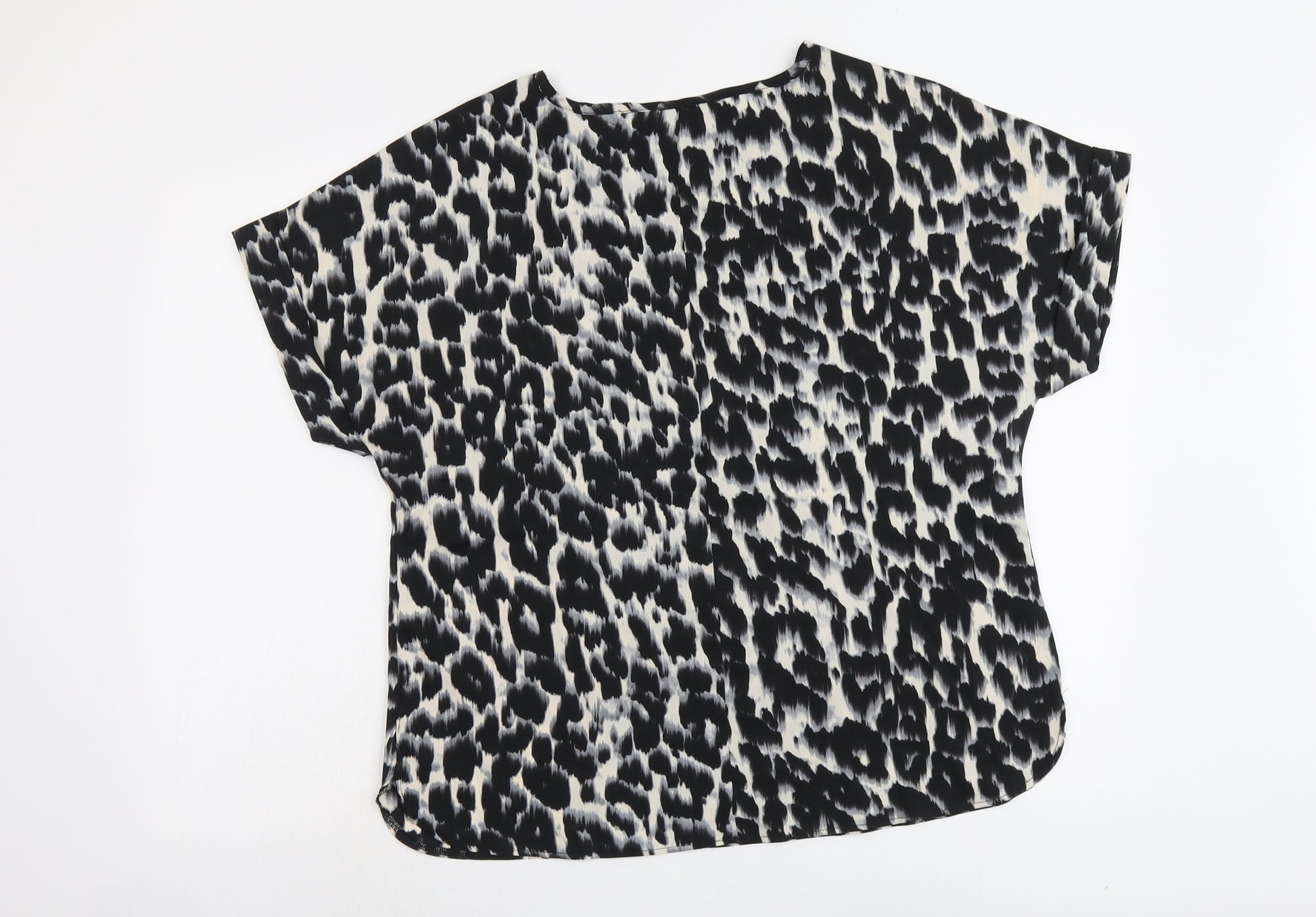 Capsule Womens Beige Animal Print Polyester Basic Blouse Size 12 Round Neck - Leopard Print