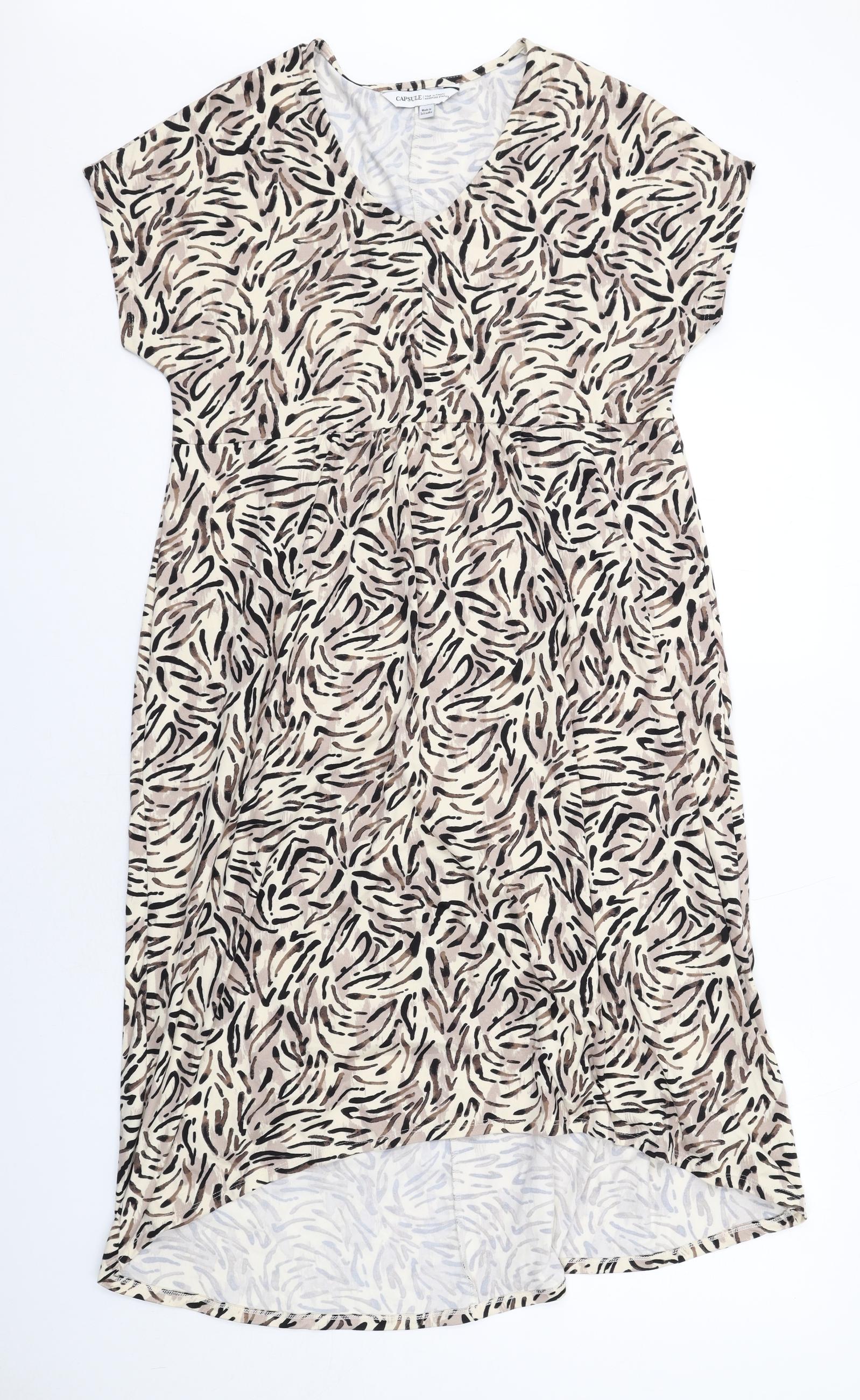 Capsule Womens Beige Geometric Polyester A-Line Size 10 V-Neck Pullover