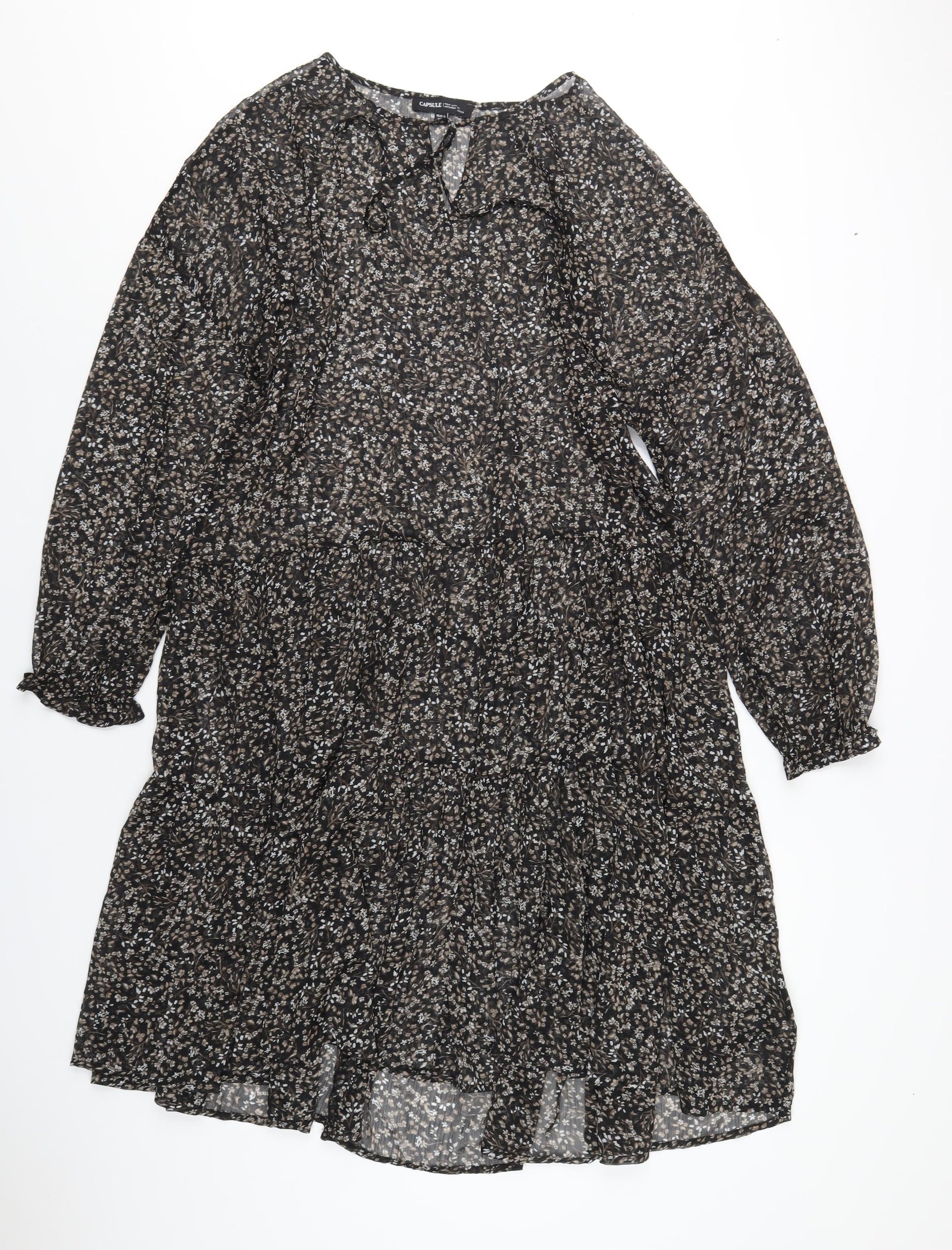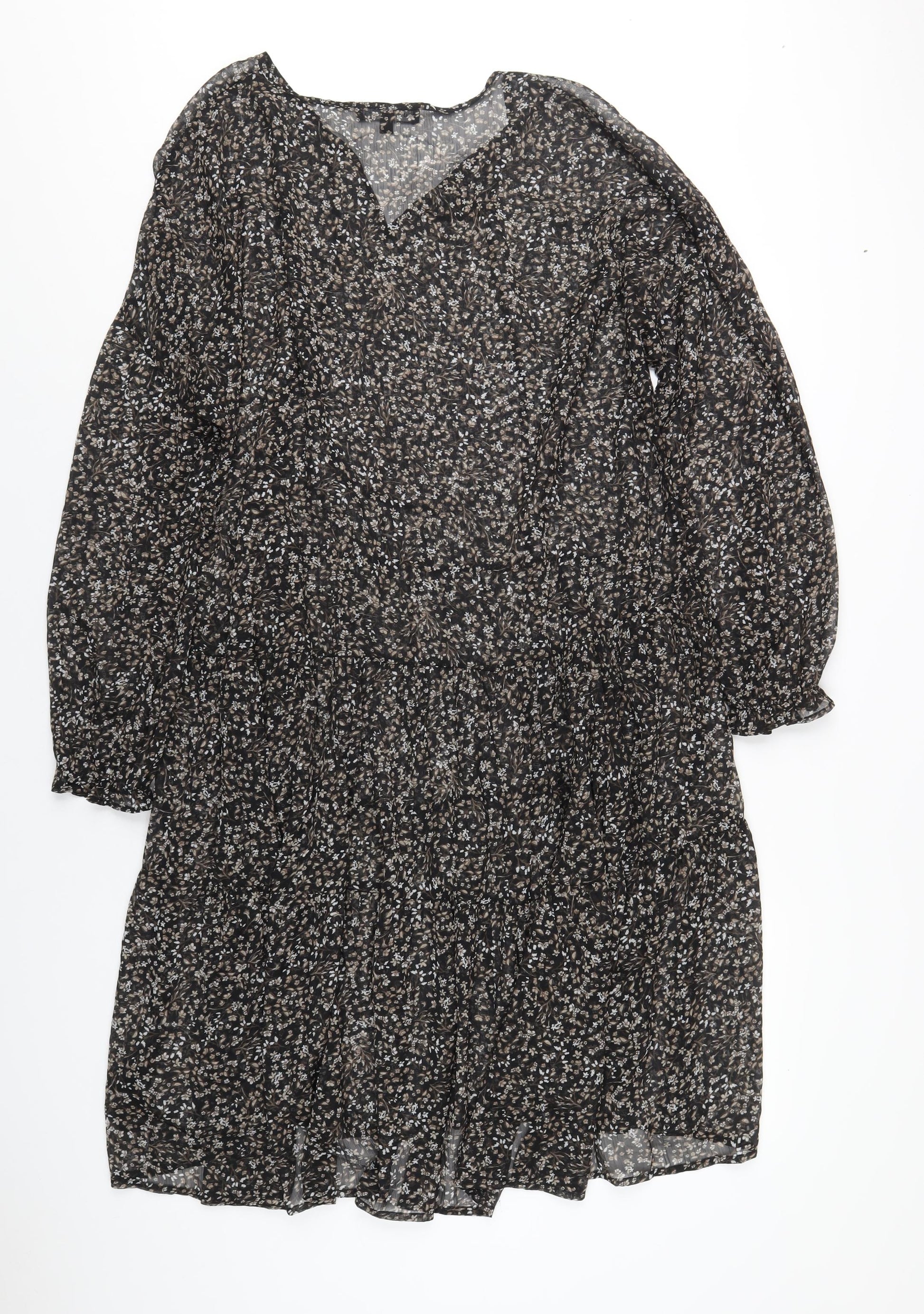 Capsule Womens Black Floral Polyester A-Line Size 16 V-Neck Pullover