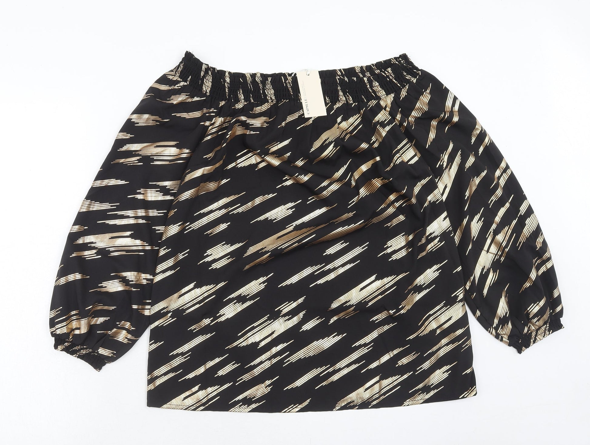 Capsule Womens Black Geometric Polyester Basic Blouse Size 10 Off the Shoulder