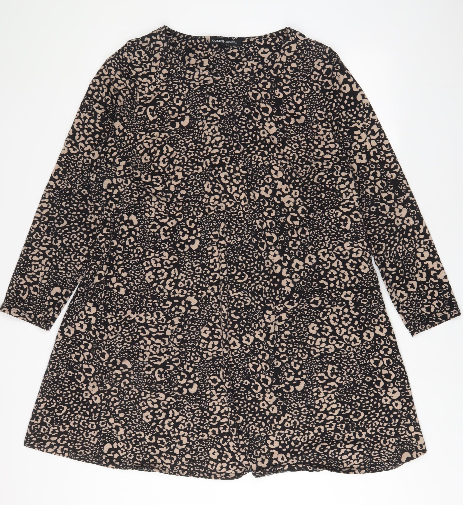 Capsule Womens Brown Animal Print Polyester A-Line Size 22 Scoop Neck Pullover
