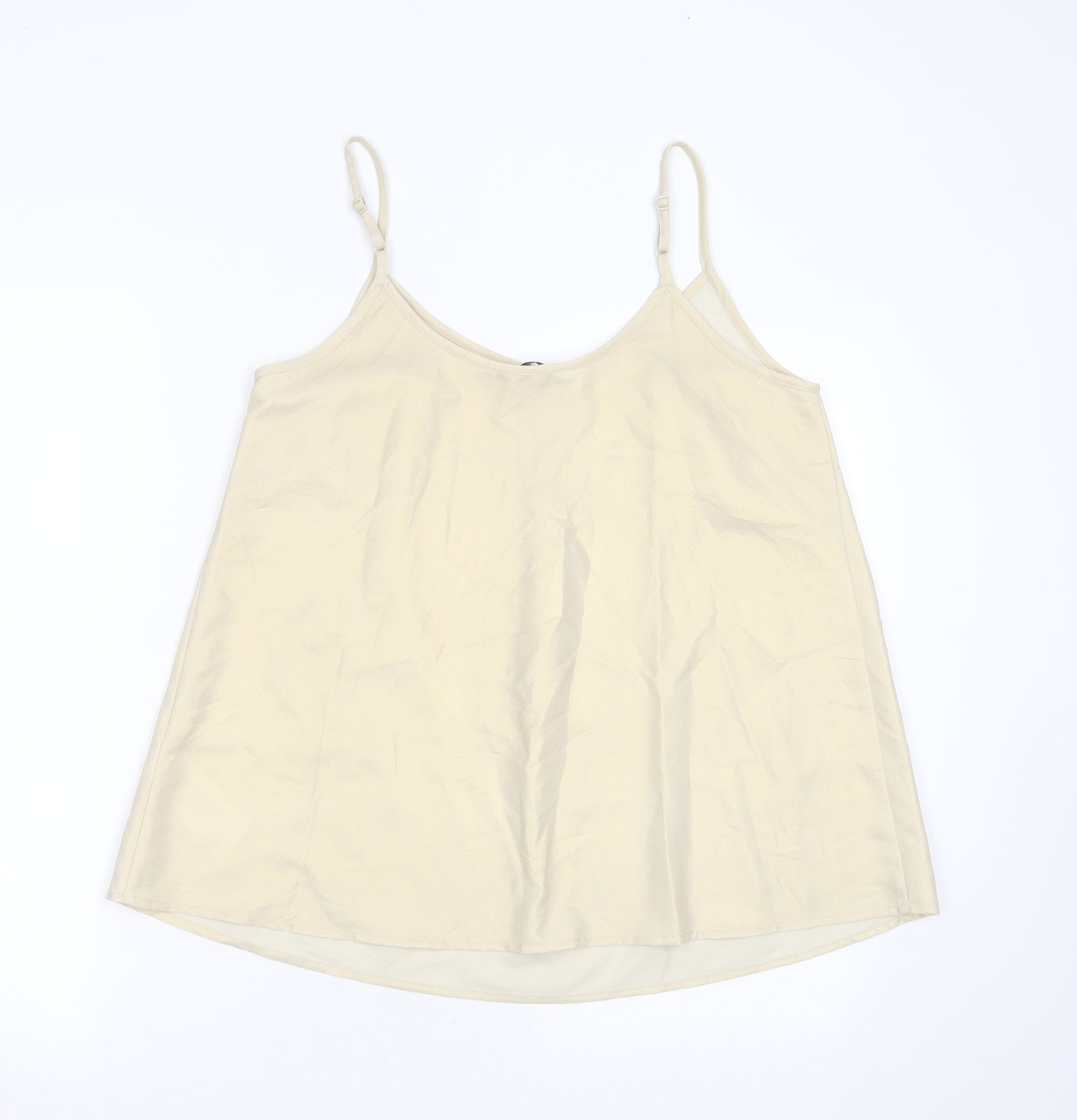 CAPSULE Womens Gold Polyester Camisole Blouse Size 12 Round Neck
