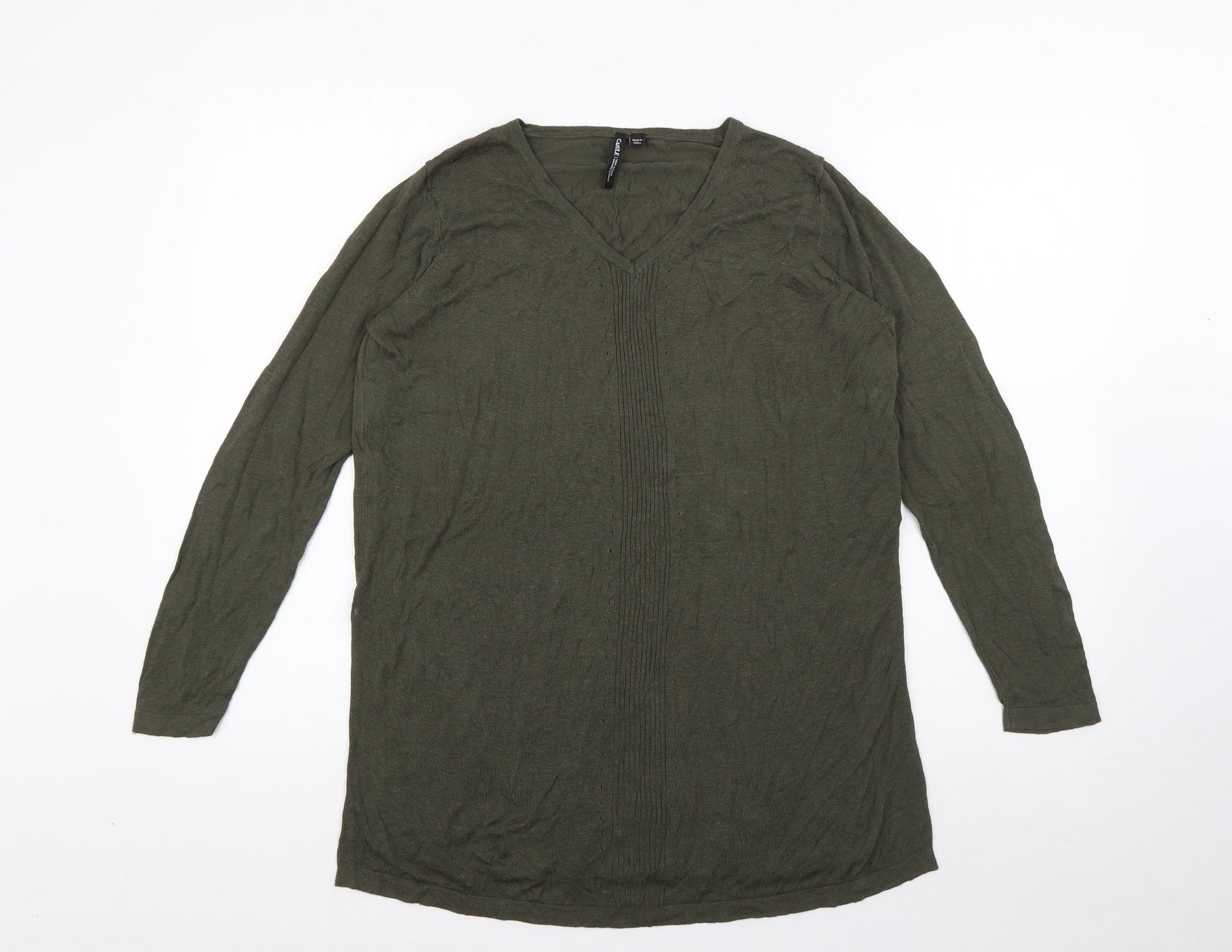 Capsule Womens Green V-Neck Viscose Pullover Jumper Size 12