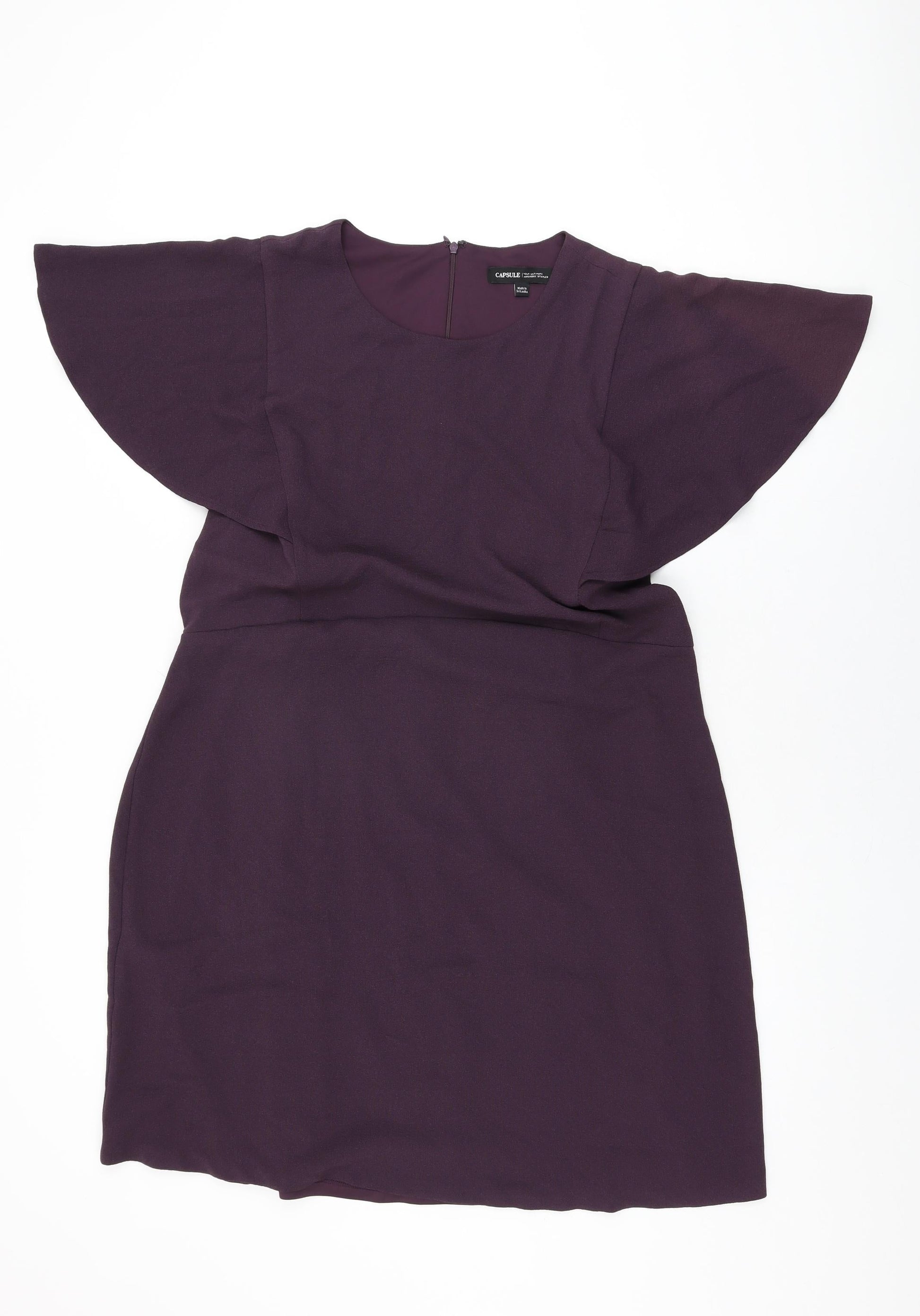 Capsule Womens Purple Polyester Shift Size 18 Round Neck Zip