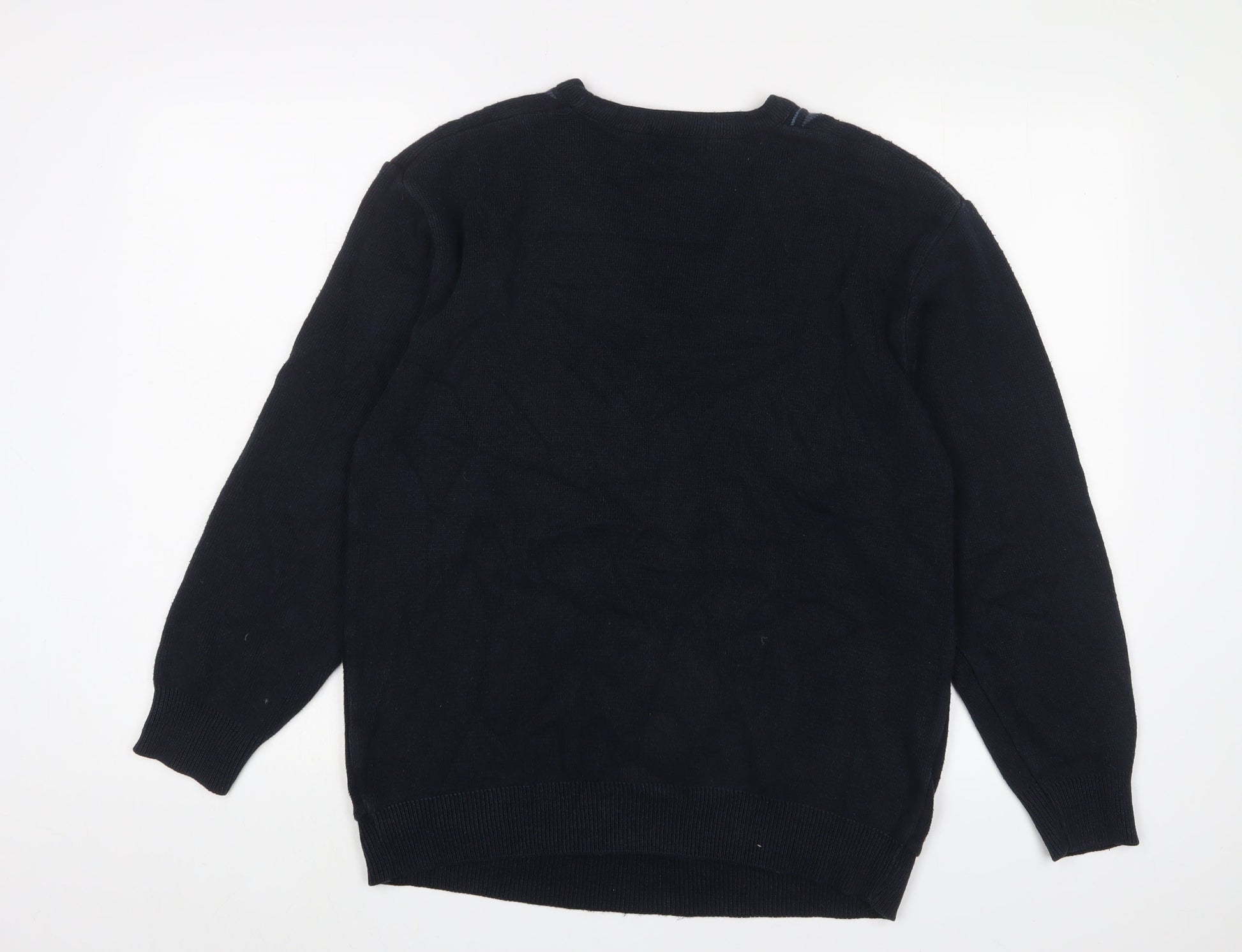 Carabou Mens Blue V-Neck Striped Cotton Pullover Jumper Size M Long Sleeve