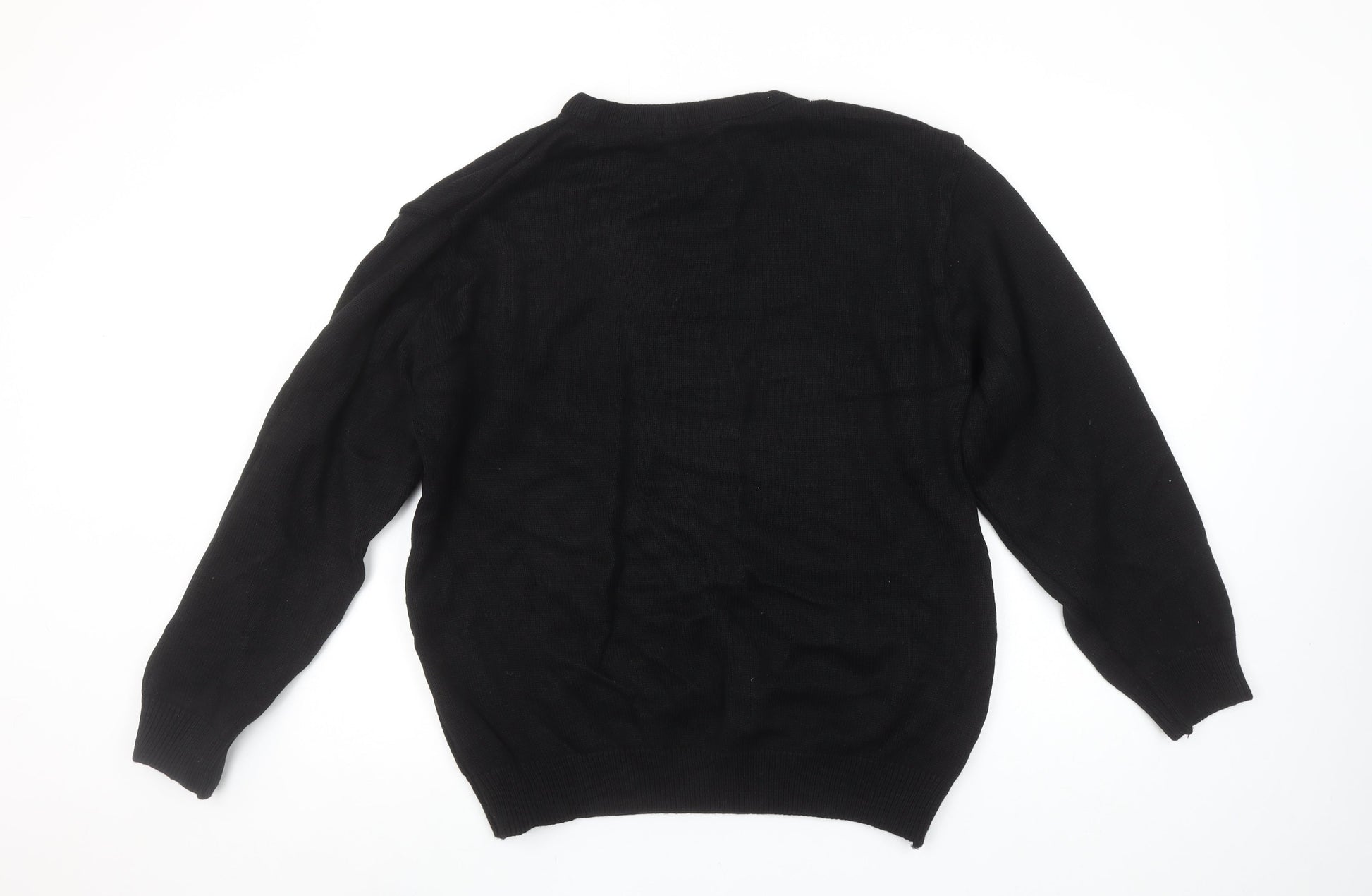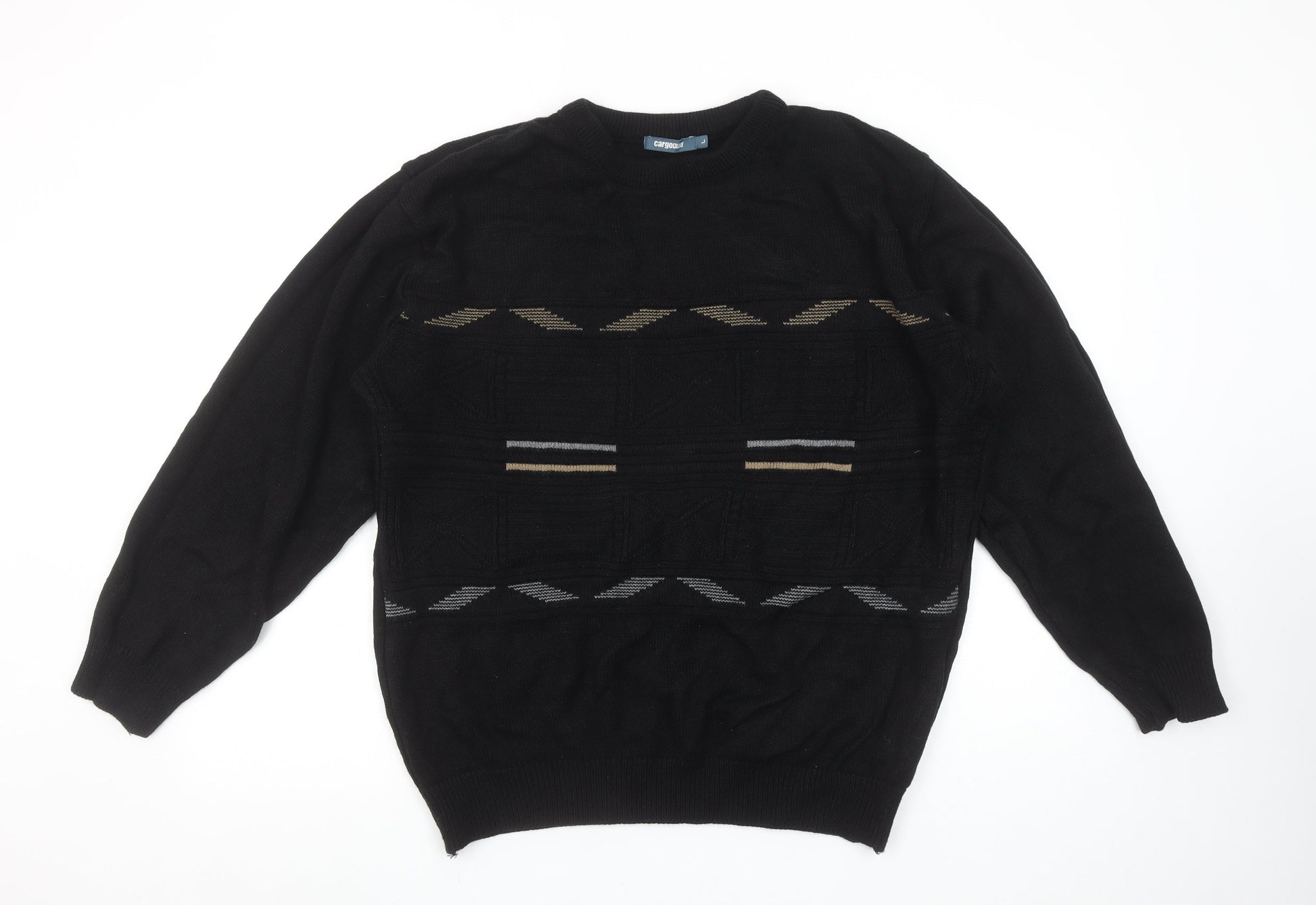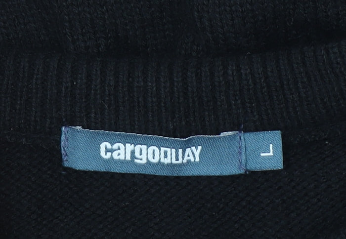 Cargo Quay Men's Black Geometric Knit Jumper L Crew Neck Pullover
