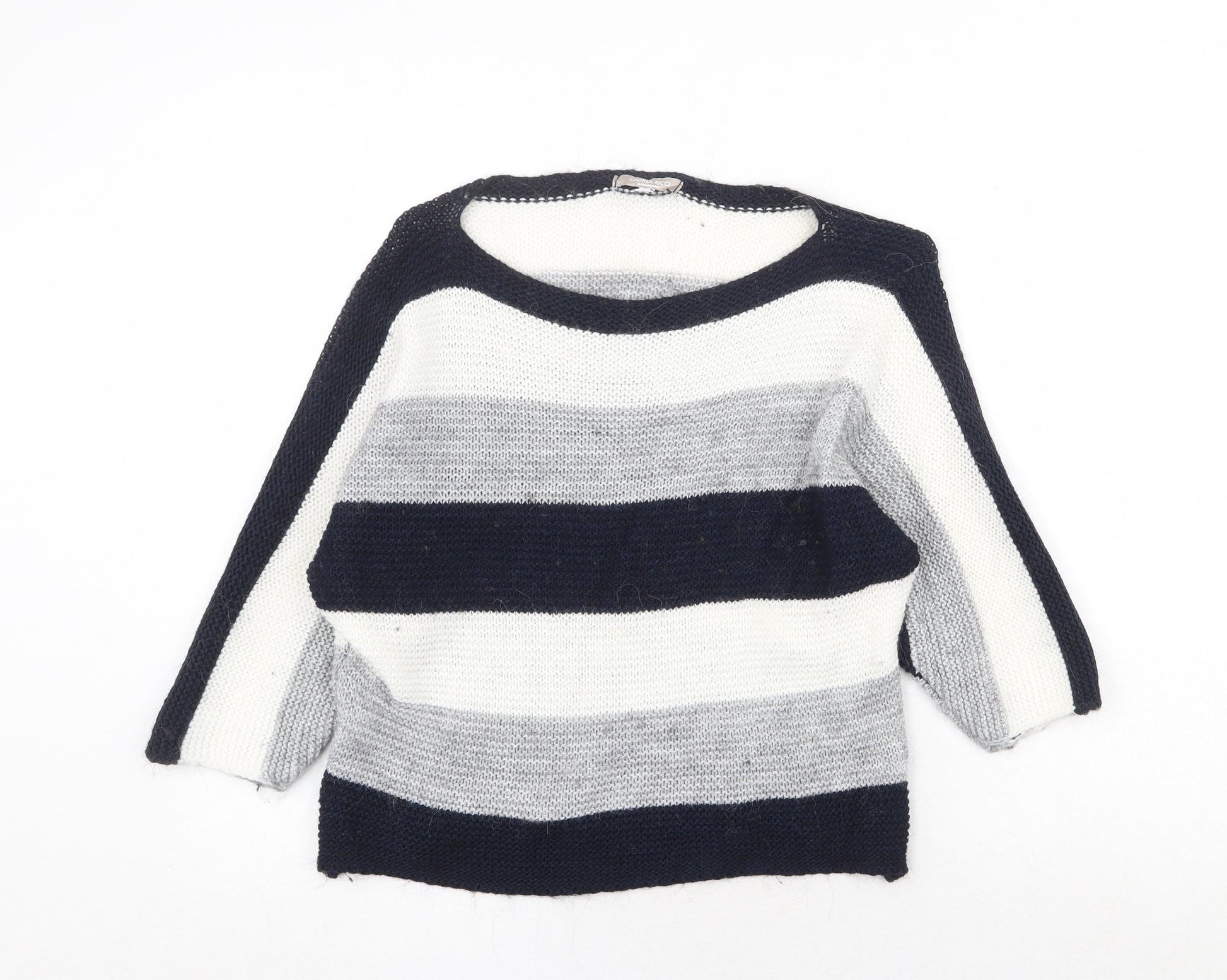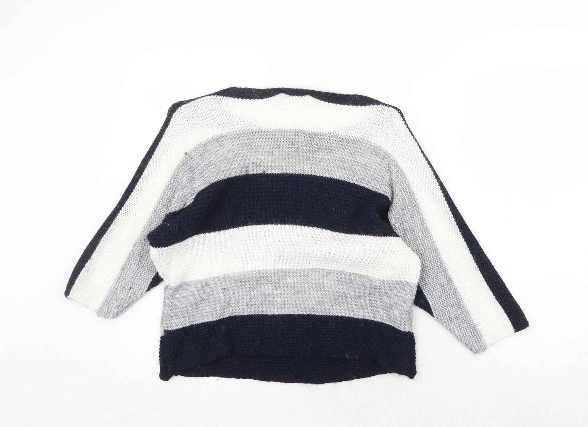 CARINA RICCI Womens Multicoloured Boat Neck Striped Acrylic Pullover Jumper Size S