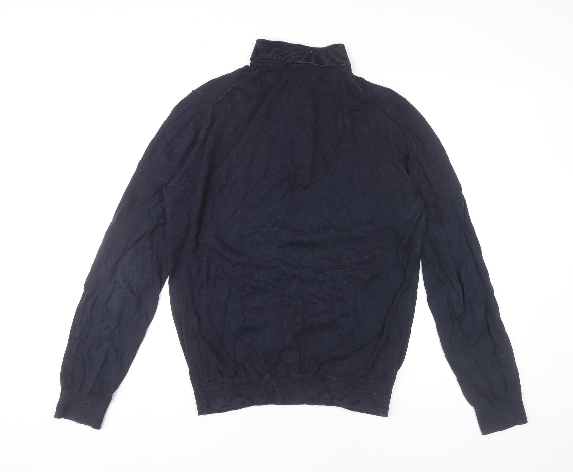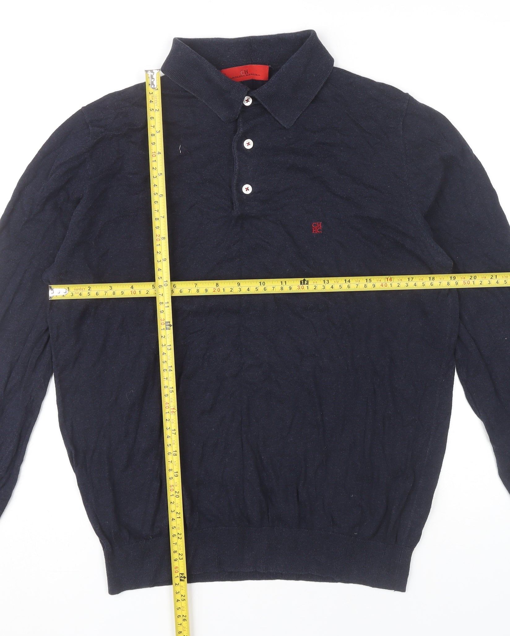 Carolina Herrera Men's Blue Long Sleeve Cotton Polo Shirt M