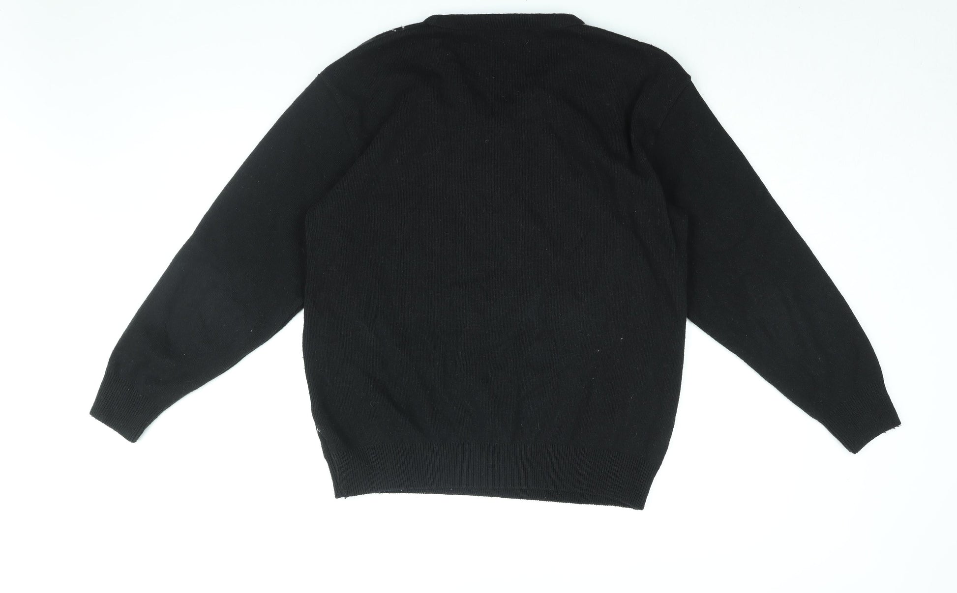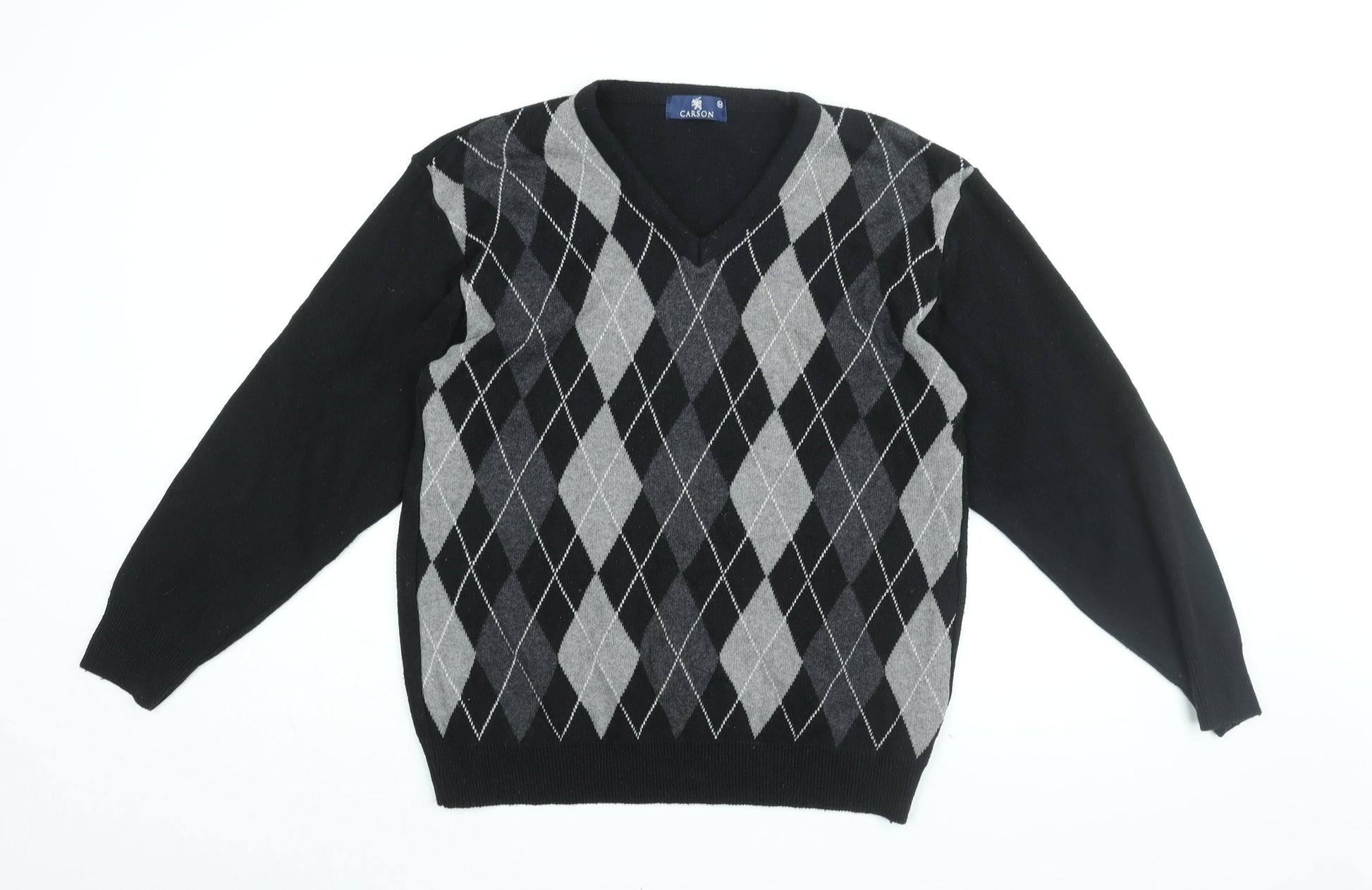 Carson Mens Black V-Neck Plaid Cotton Pullover Jumper Size M Long Sleeve
