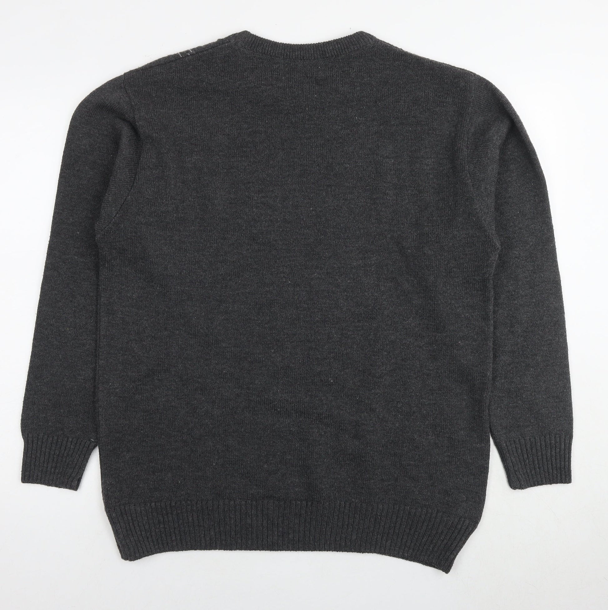 Cavallio Mens Grey Round Neck Geometric Polyester Pullover Jumper Size XL Long Sleeve