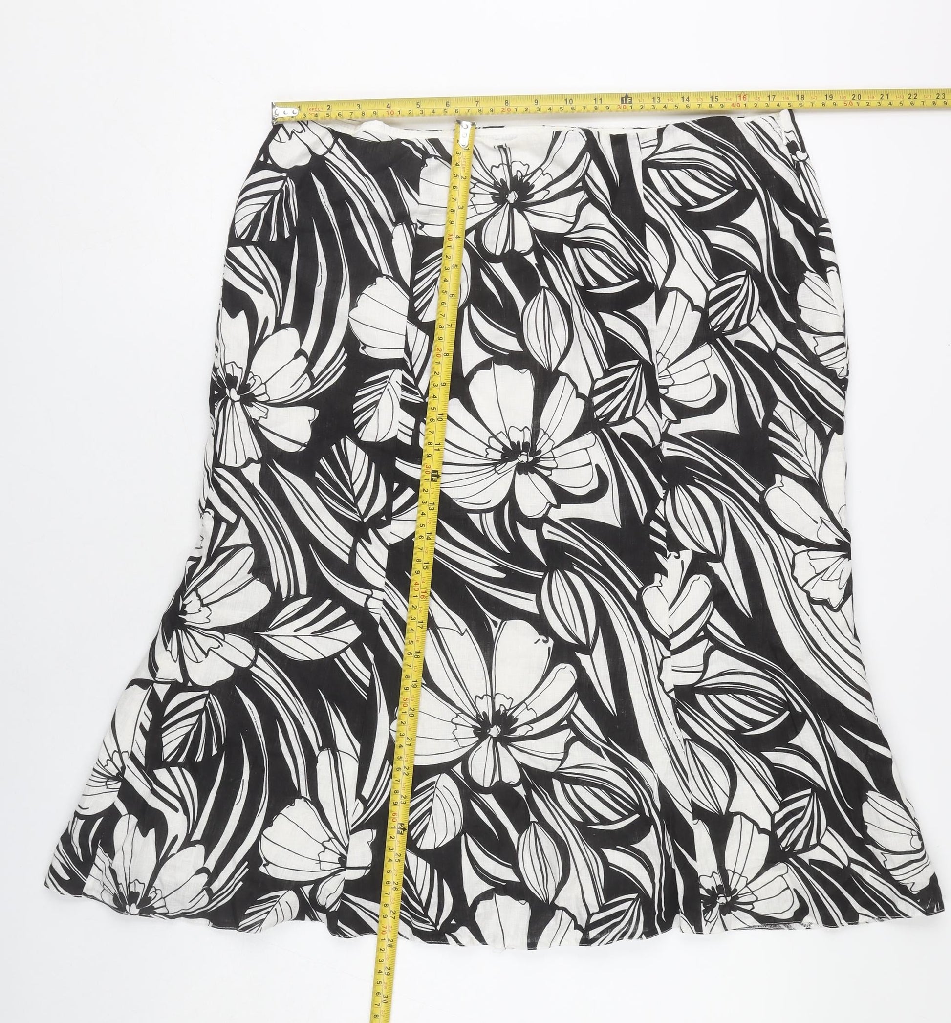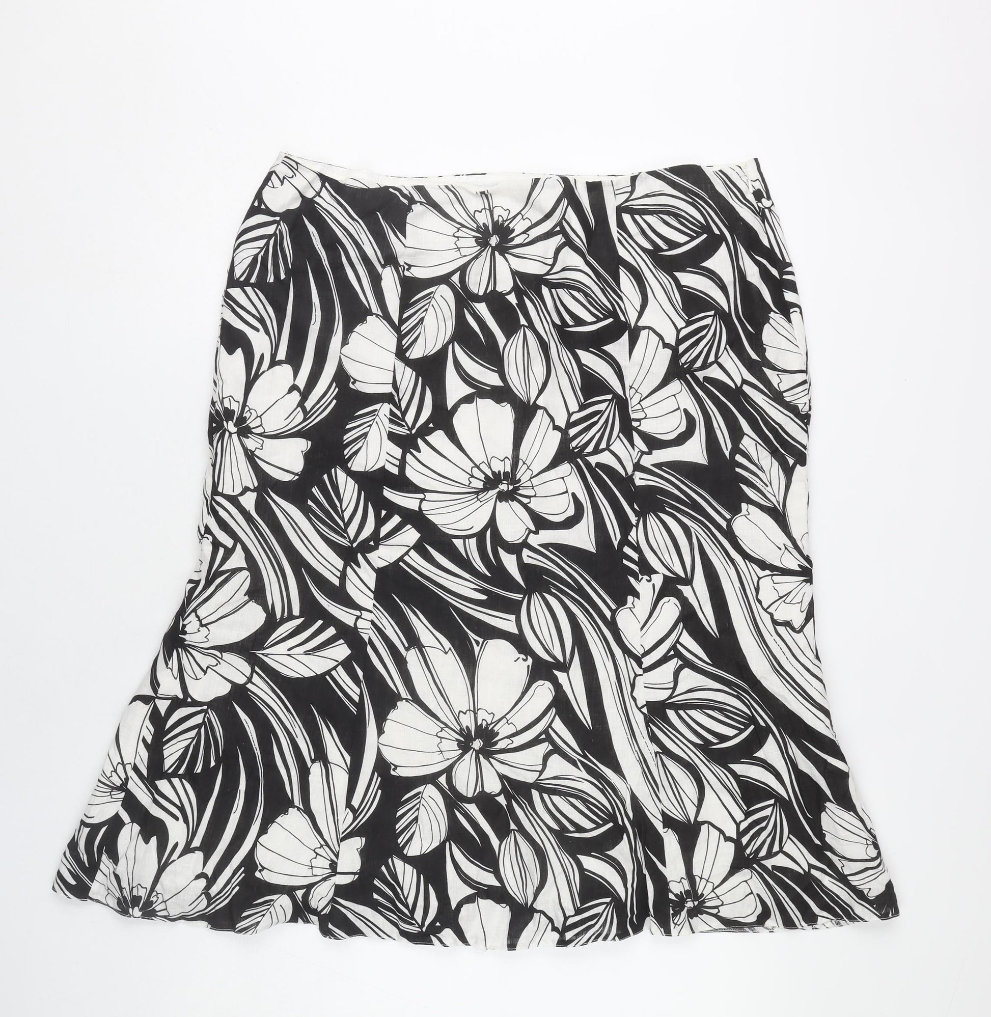 CC Petite Womens Black Floral Linen Knee Length Pencil Skirt Size 16