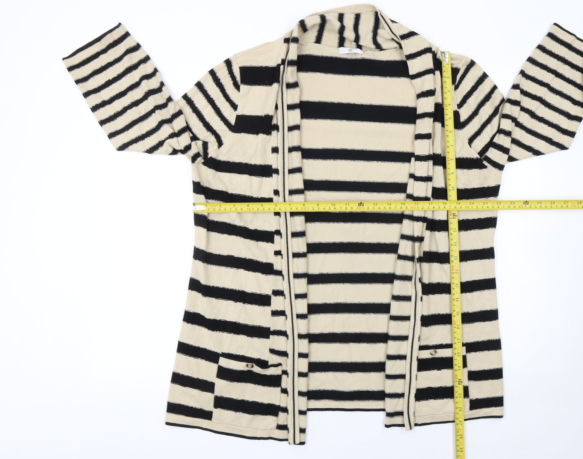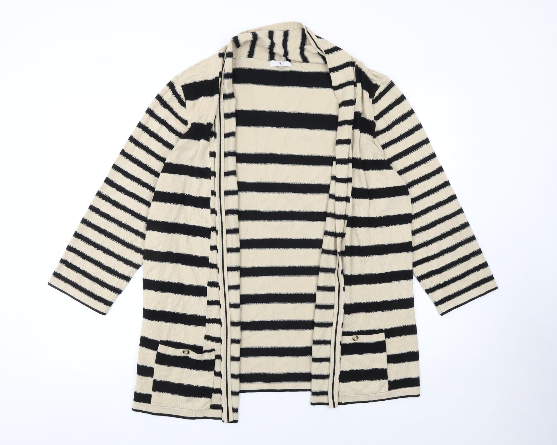 CC Women Beige Black Striped Knit Longline Cardigan XL