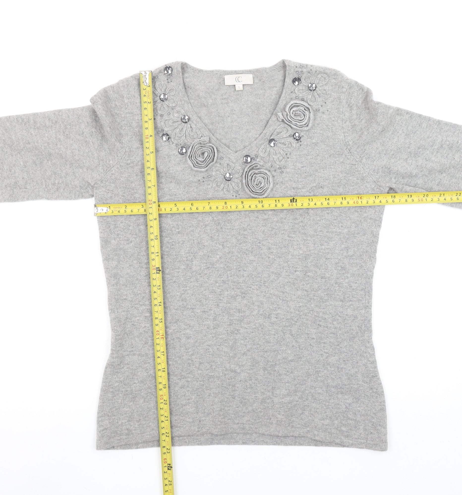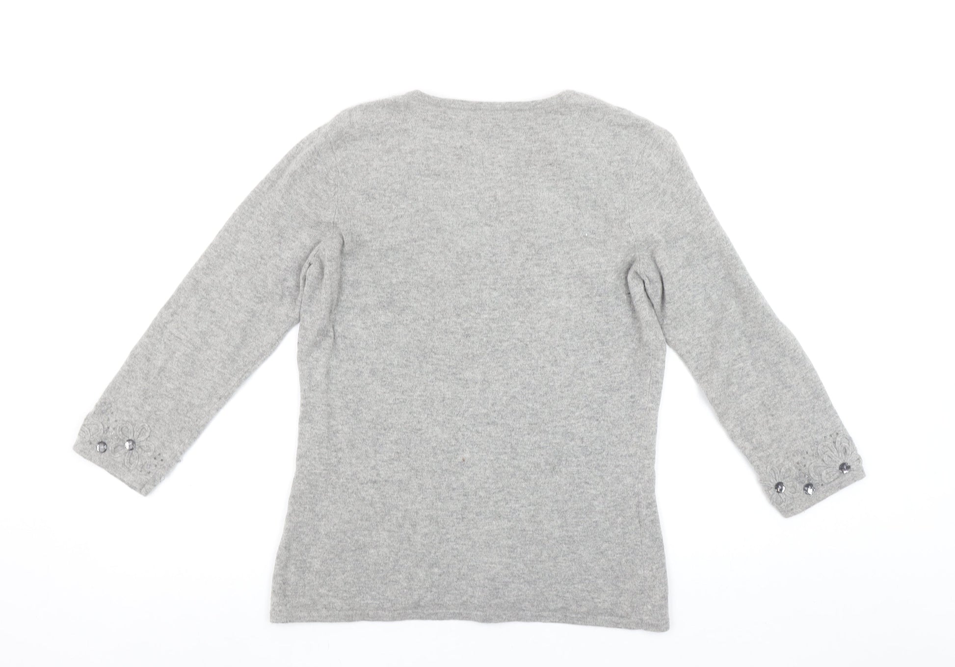 CC Women Grey Angora Cashmere Blend V-Neck Long Sleeve Jumper S