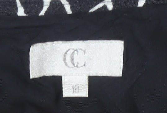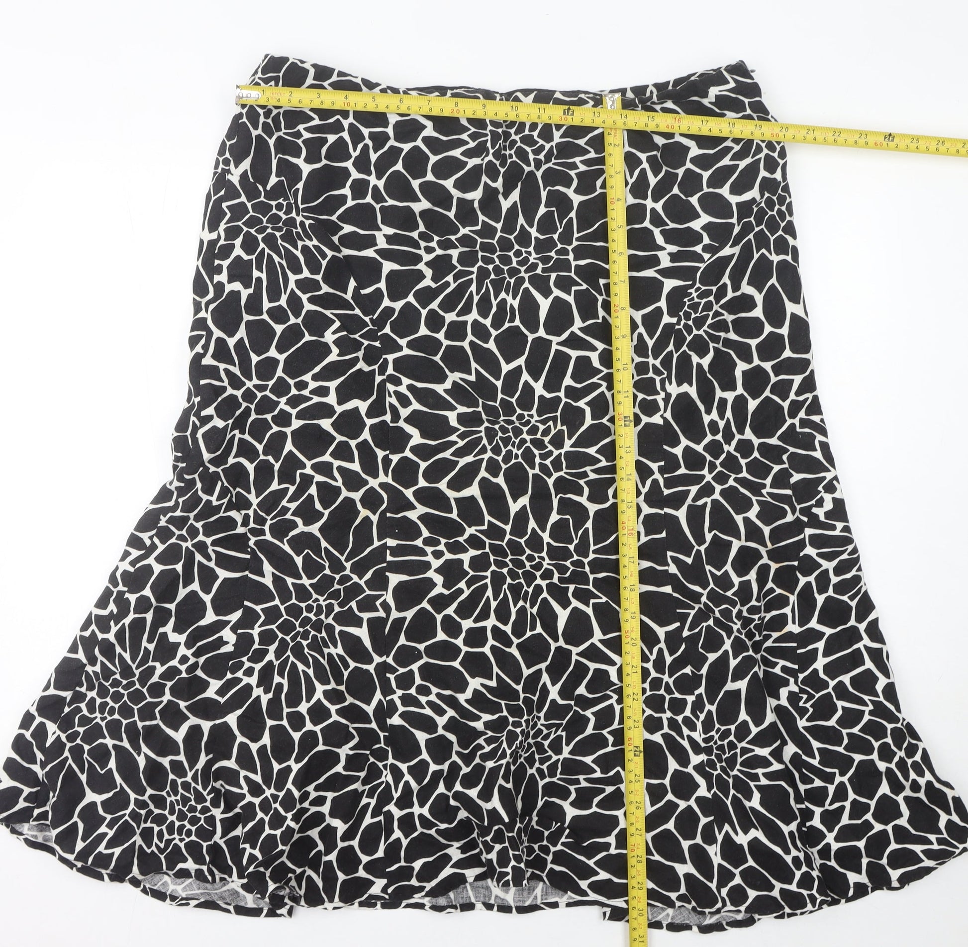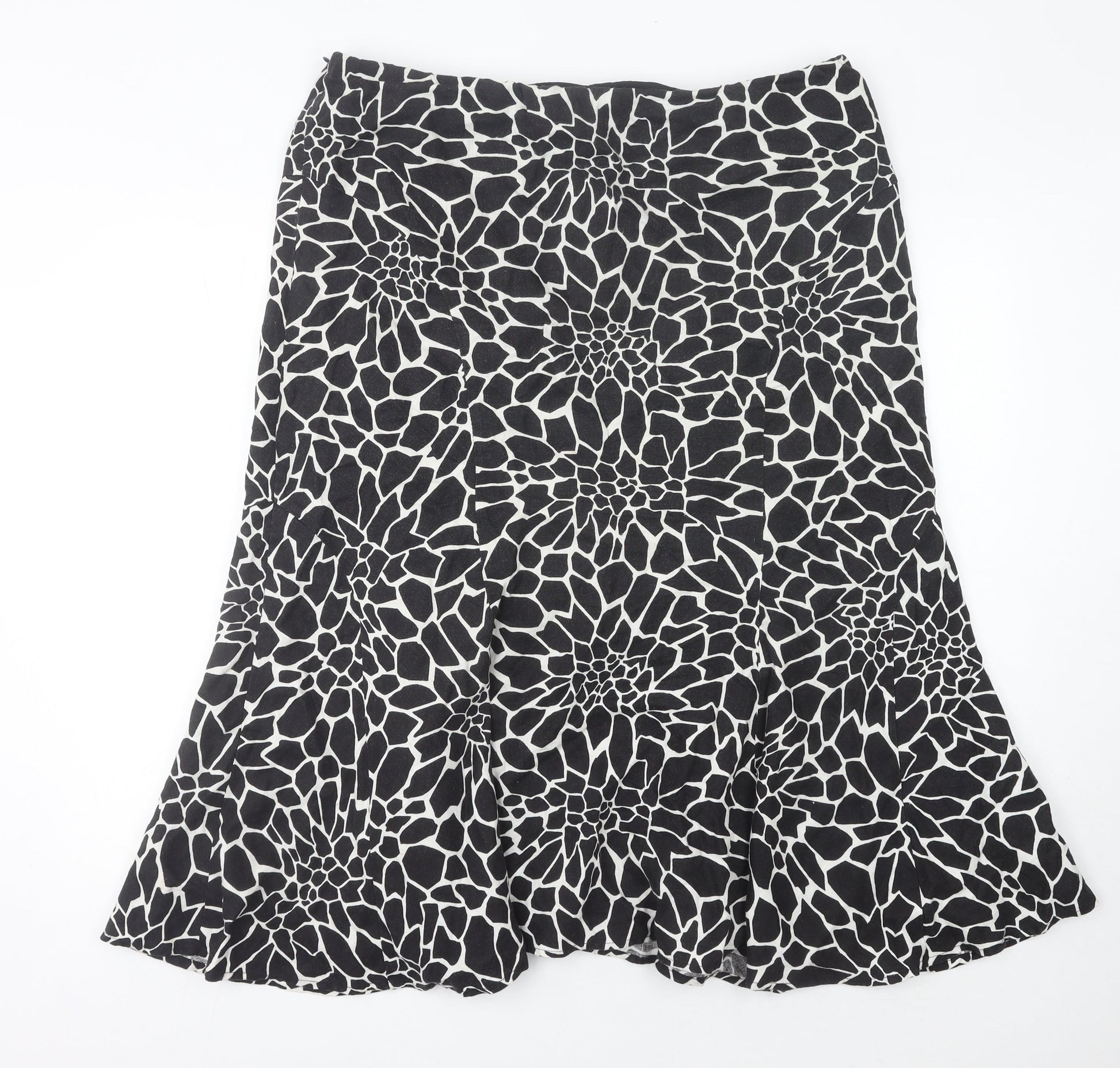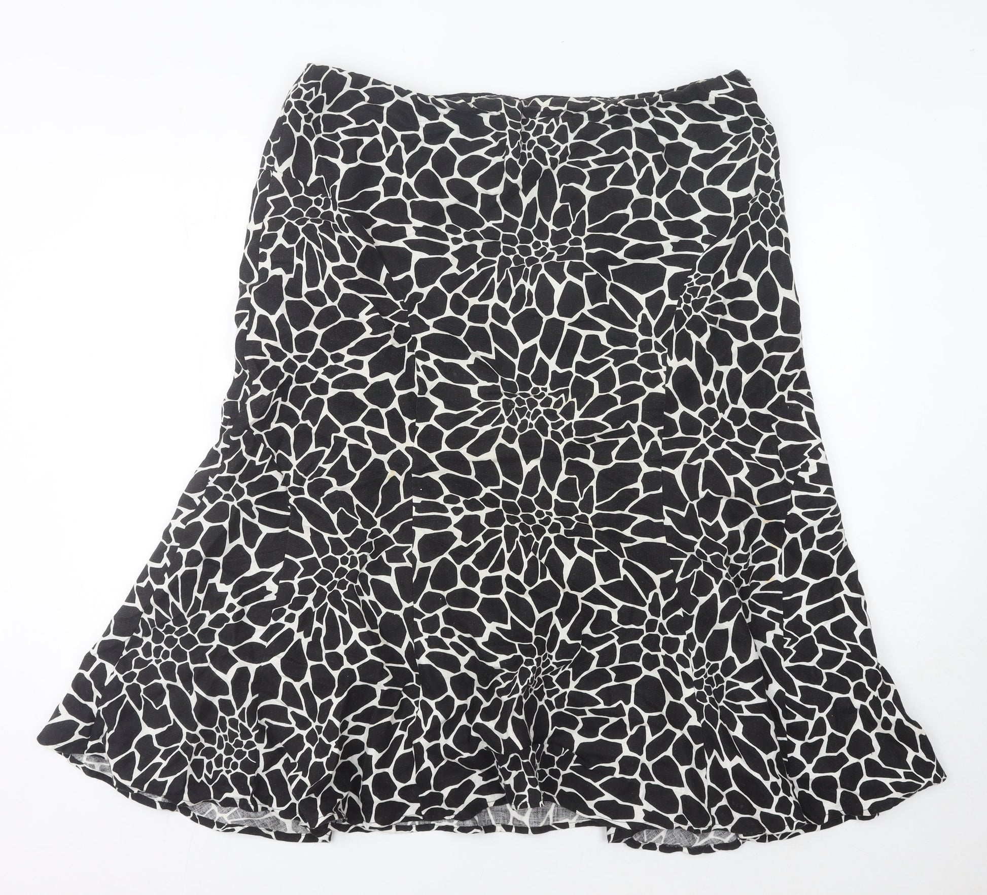 CC Women’s Black Animal Print Linen Flare Skirt Size 18 Knee Length
