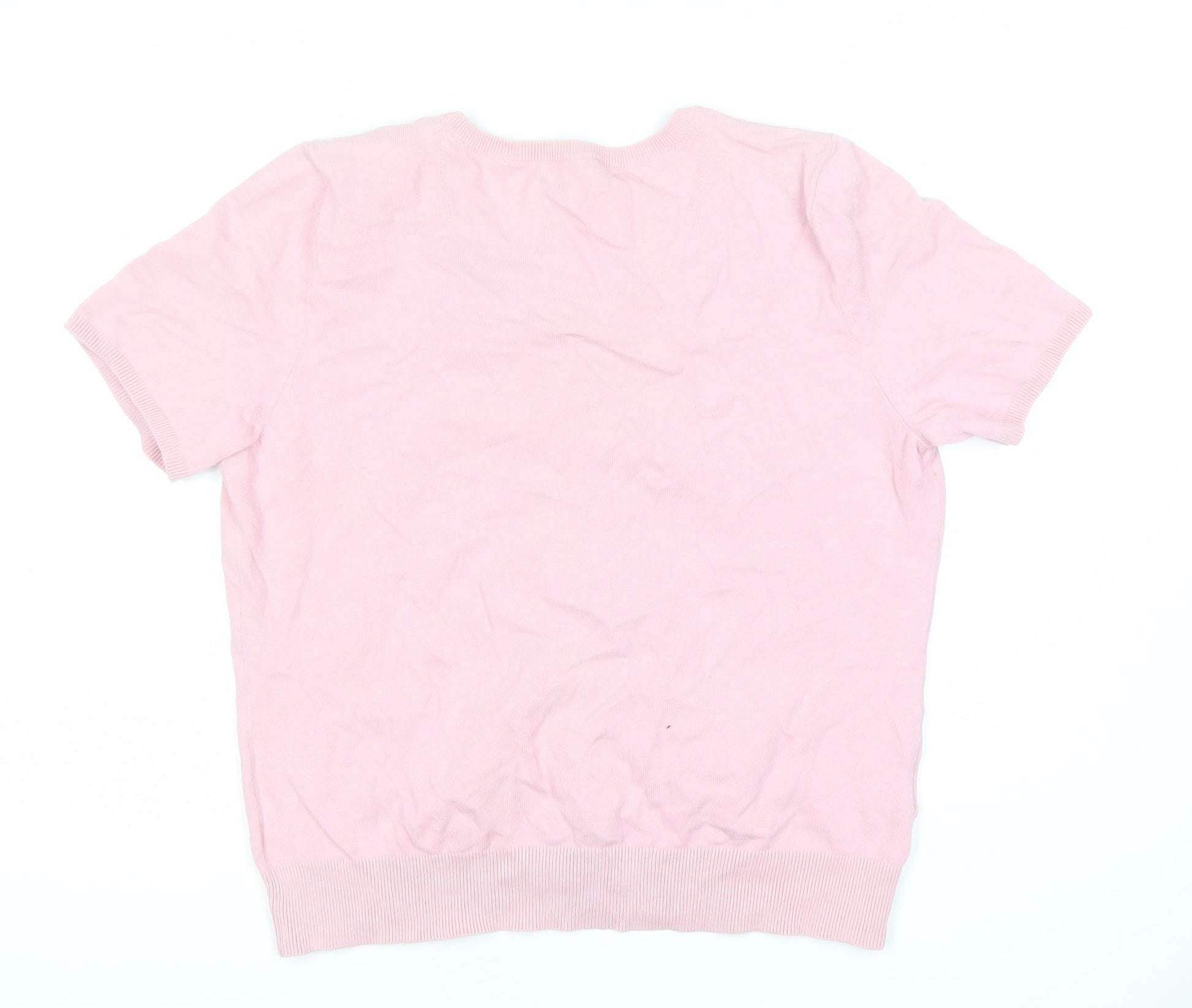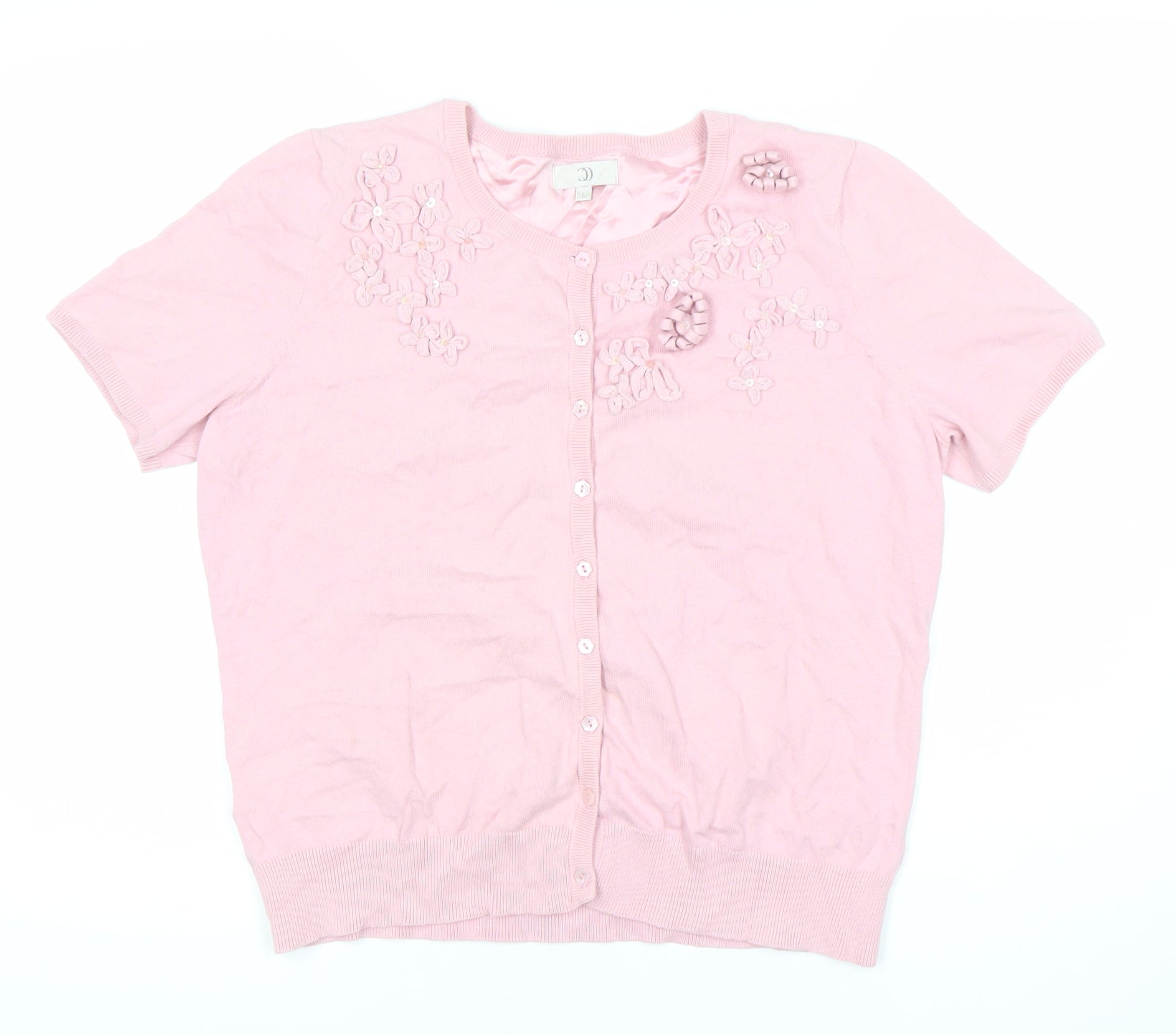 CC Women’s Pink Floral Cardigan L Short Sleeve Knit Crew Neck