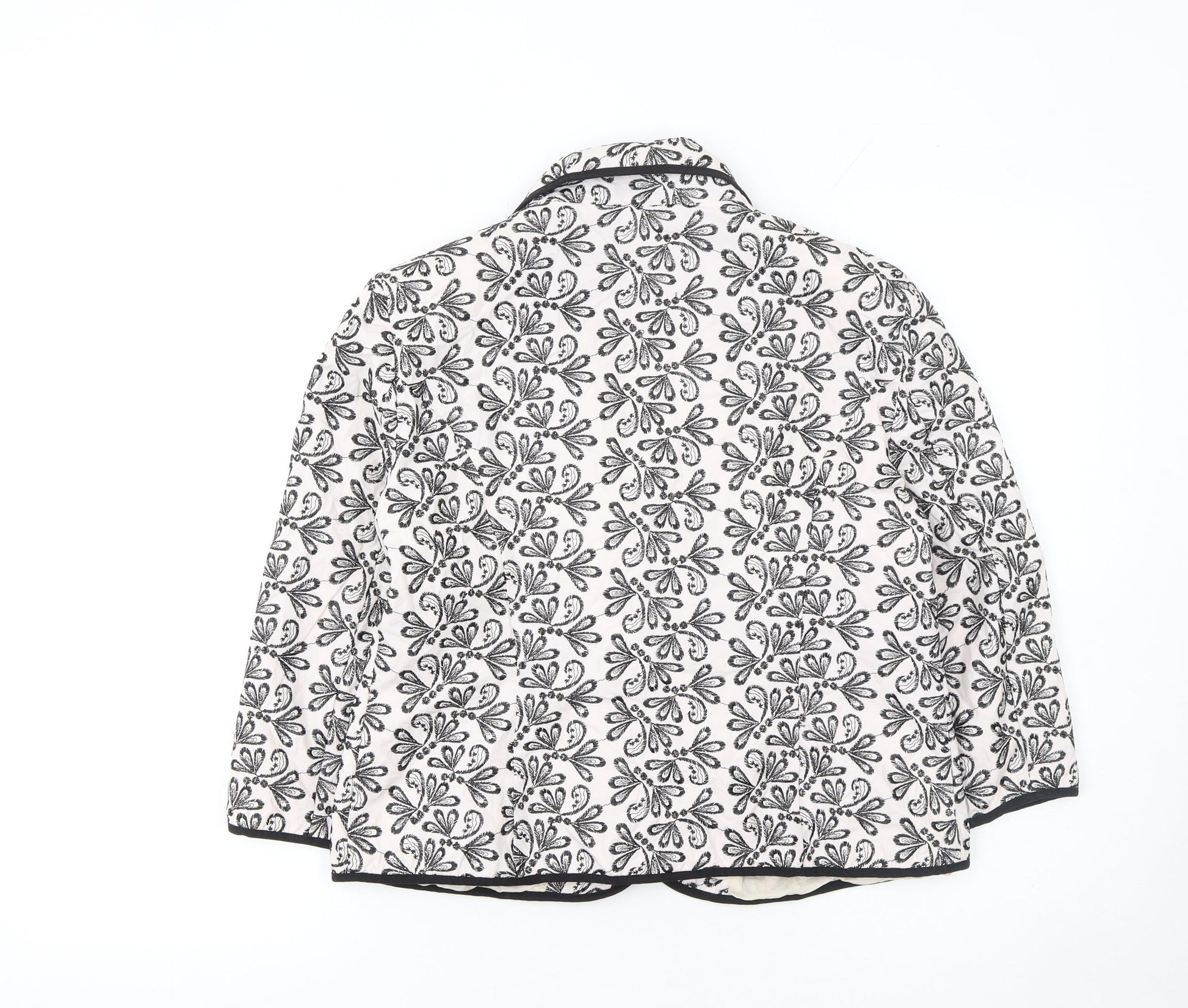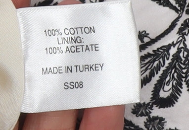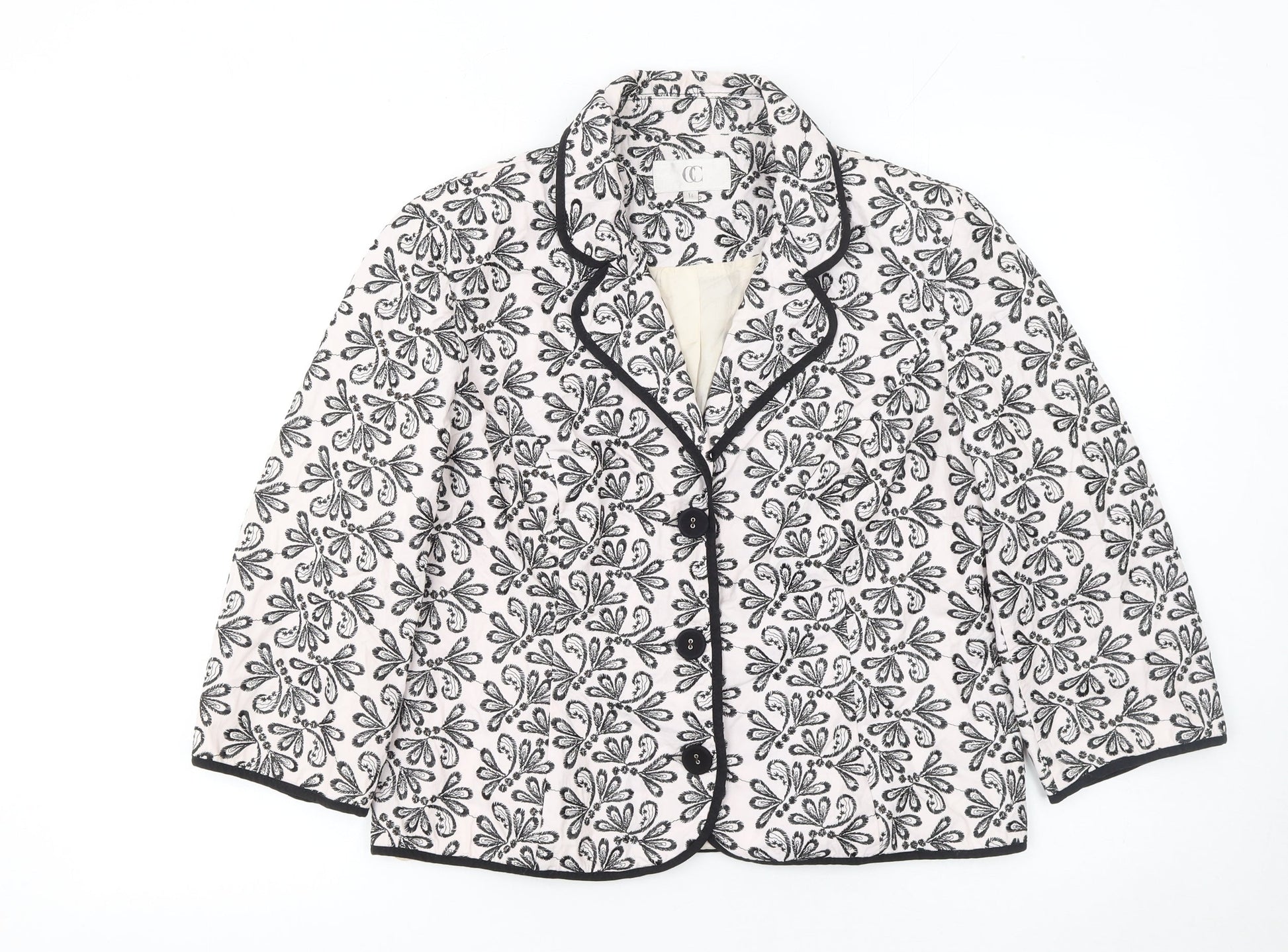 CC Women White Black Floral Embroidered Suit Jacket Size 14 Cotton Blend