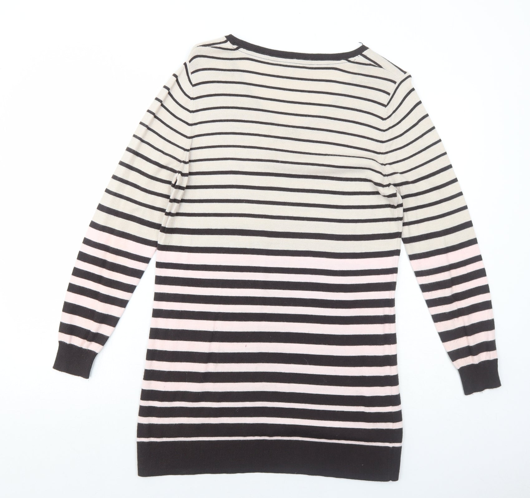 CC Womens Beige Striped Viscose Jumper Dress Size M V-Neck Pullover
