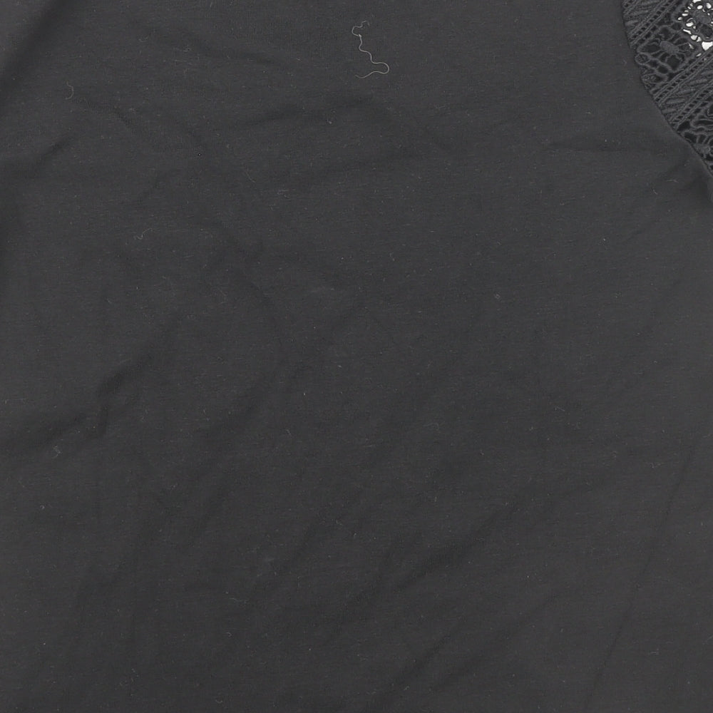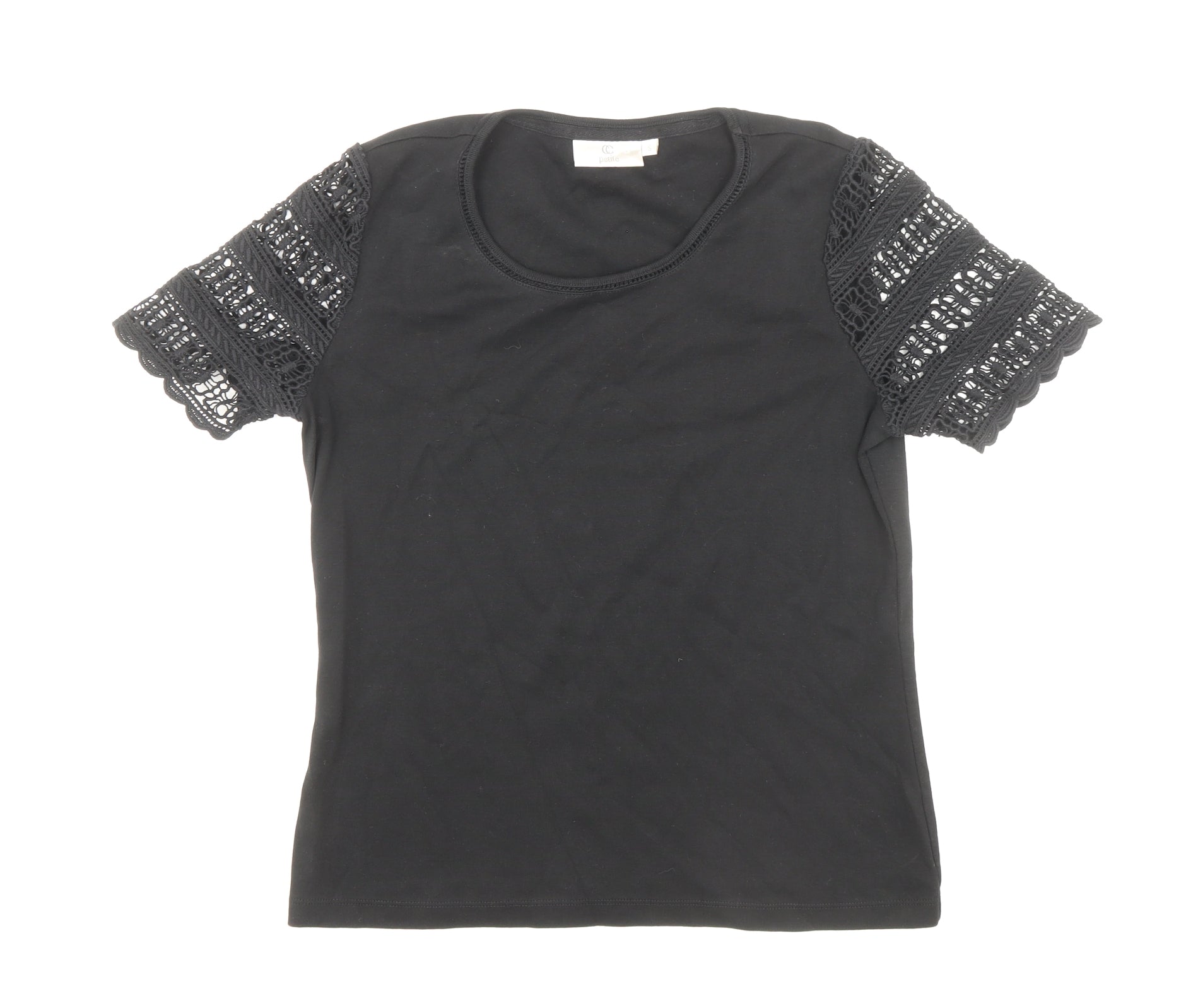 CC Womens Black Polyester Basic T-Shirt Size S Round Neck - Lace Sleeve Detail