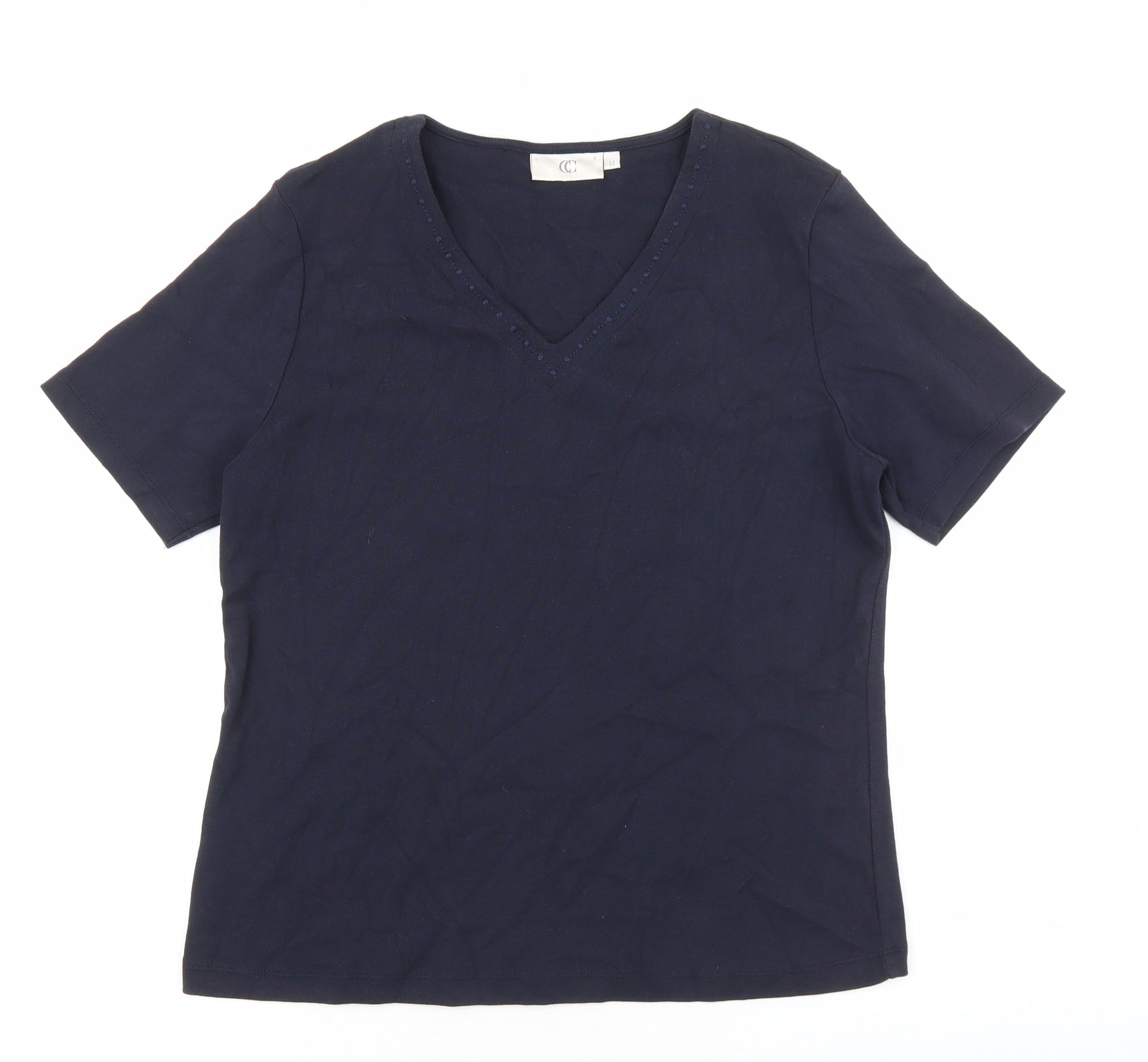 CC Womens Blue 100% Cotton Basic T-Shirt Size M V-Neck