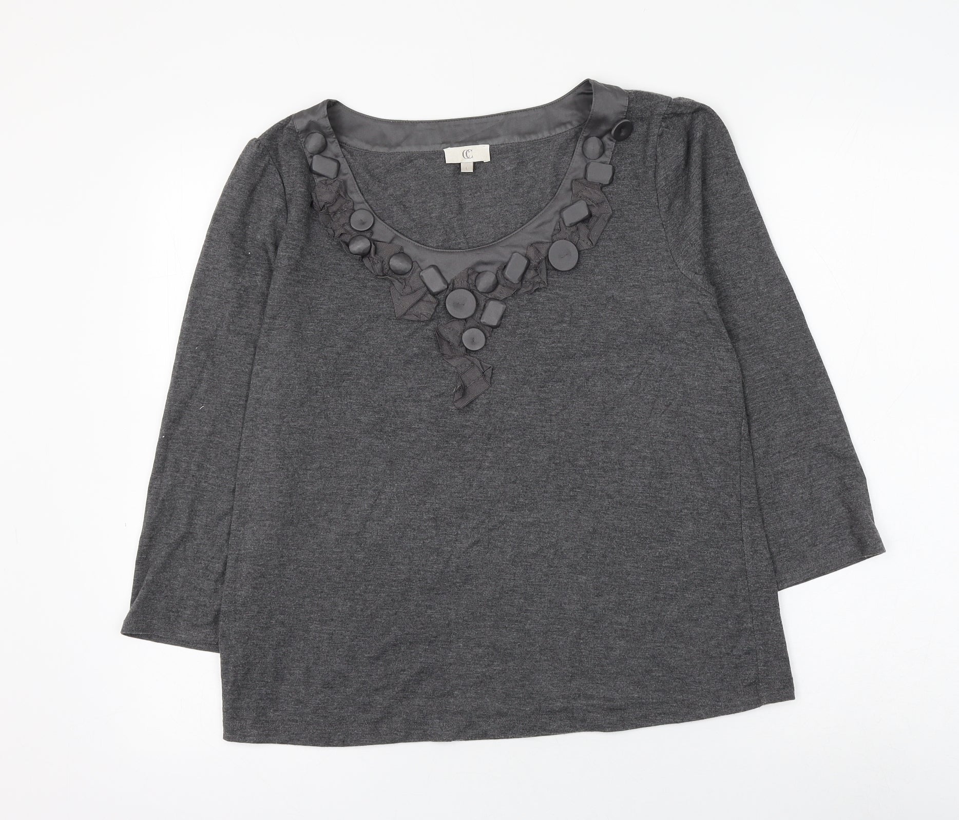 CC Womens Grey Polyester Basic Blouse Size L Scoop Neck