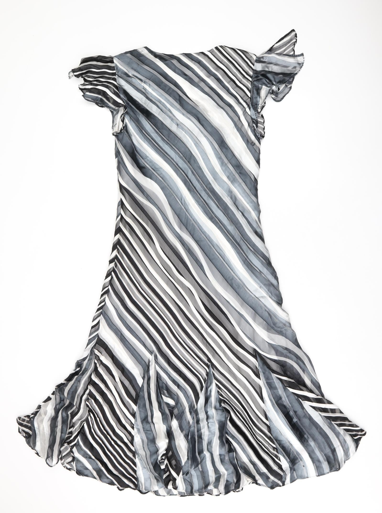 CC Womens Grey Striped Viscose Shift Size 10 V-Neck Pullover