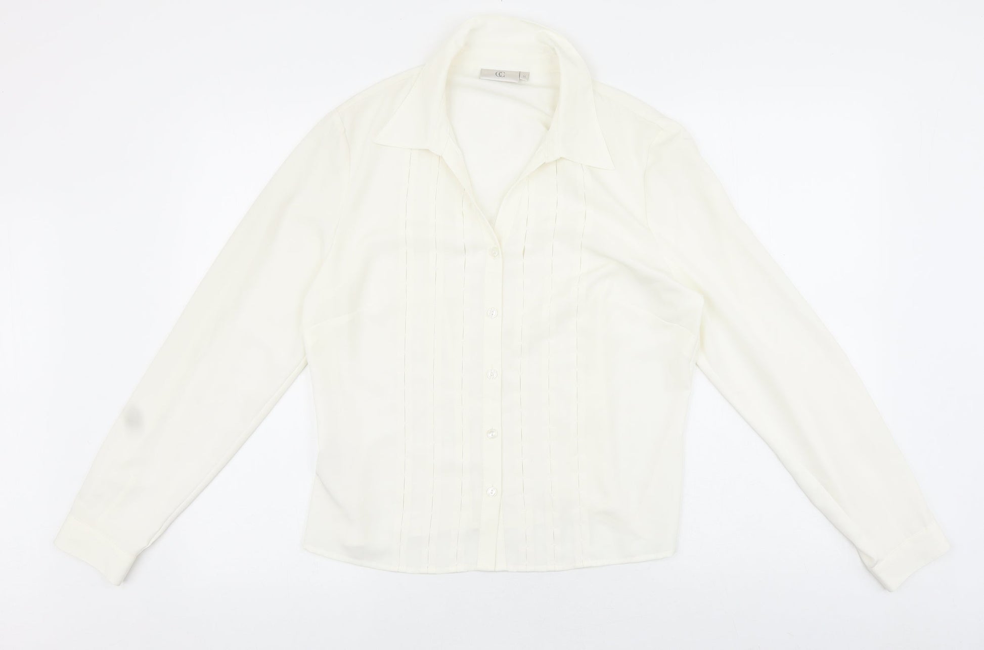 CC Womens Ivory Polyester Basic Button-Up Size 14 Collared