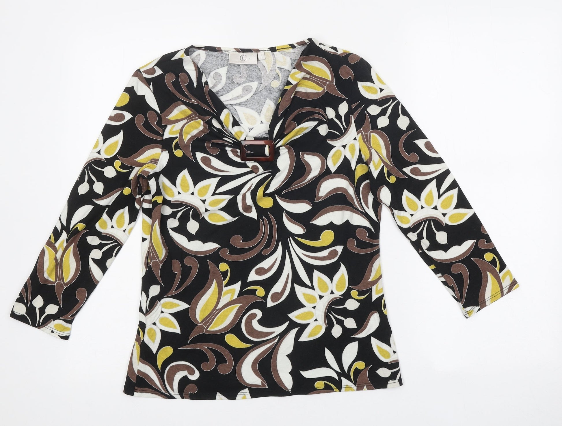 CC Womens Multicoloured Geometric Viscose Basic T-Shirt Size S V-Neck