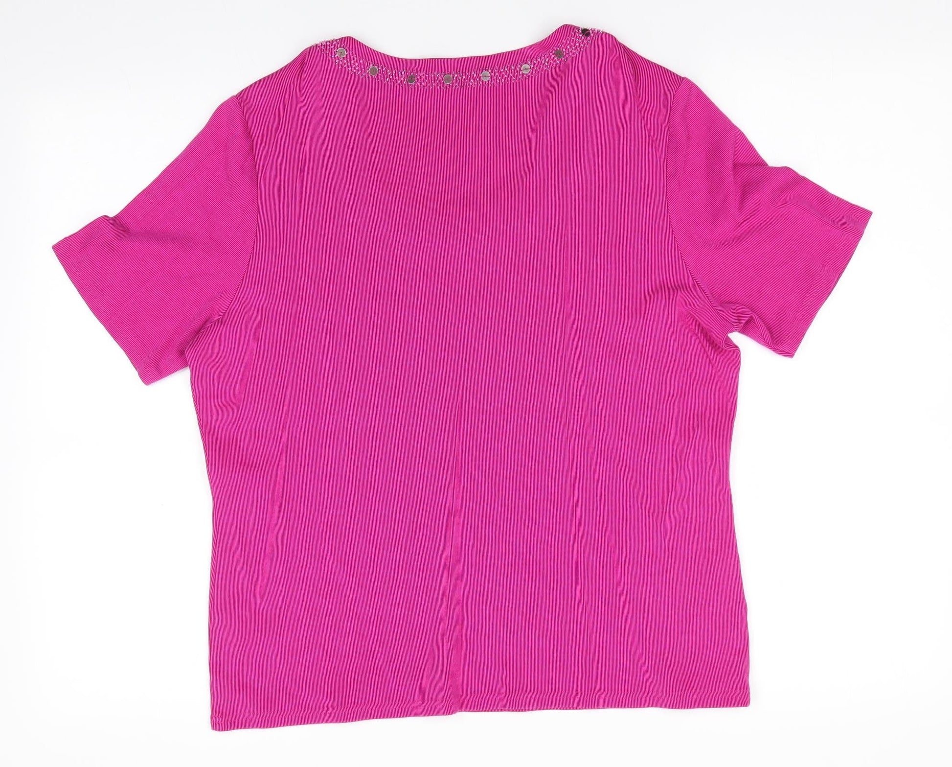 CC Womens Pink Cotton Tunic T-Shirt Size XL Round Neck - Detailed neckline