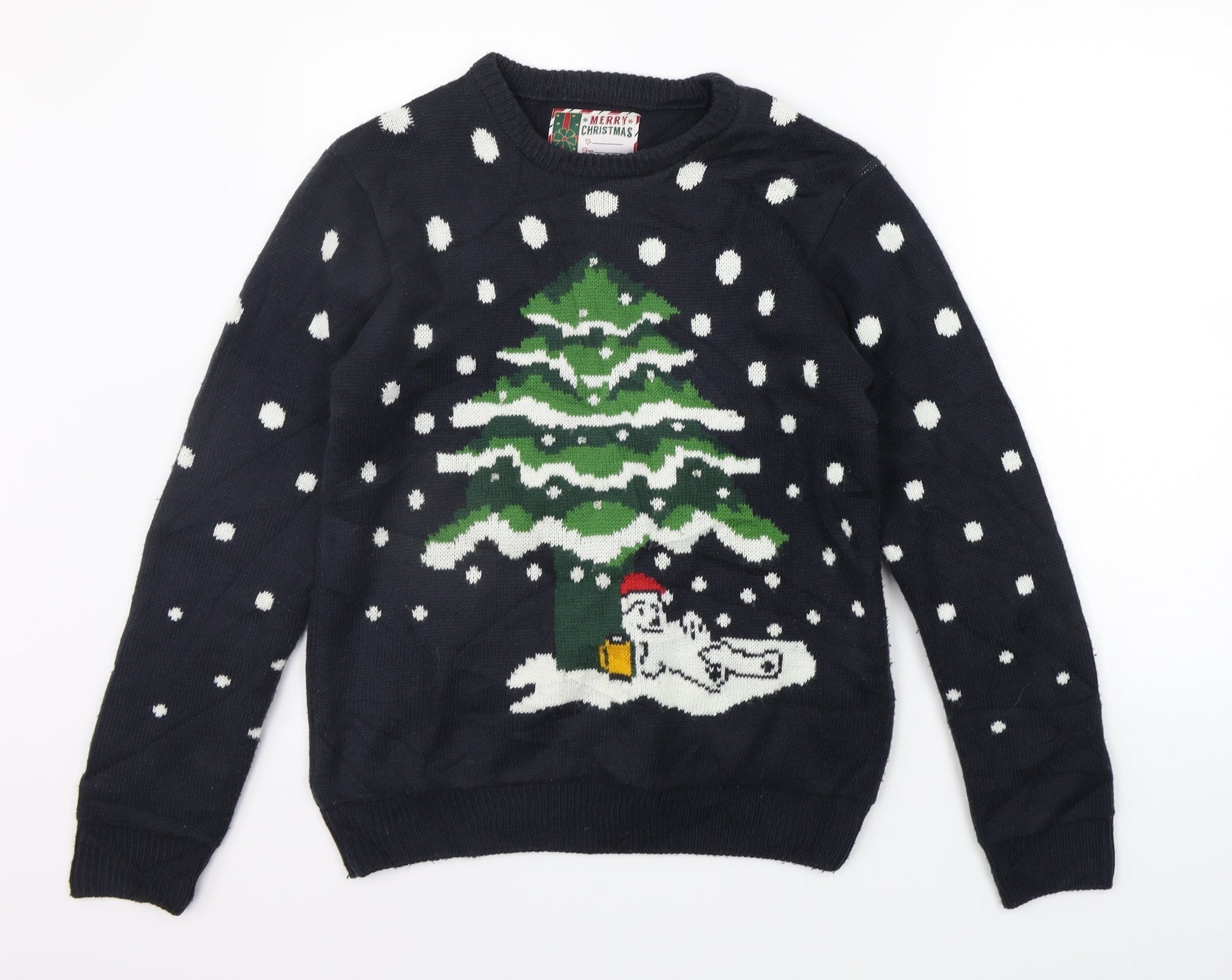 Ceader wood state Mens Black Henley Jumper Size S - CHRISTMAS