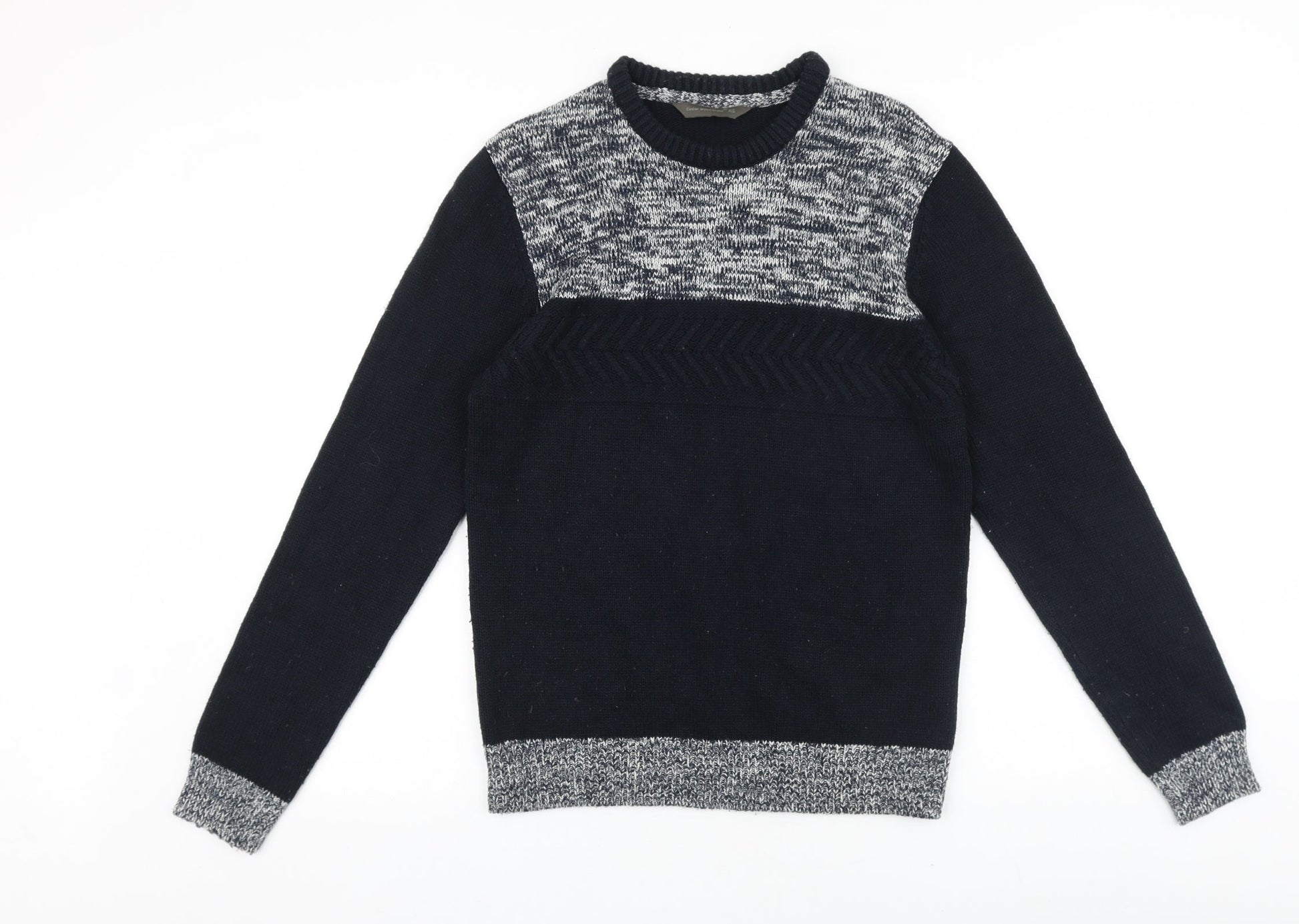 Cedar Wood State Mens Black Round Neck Acrylic Pullover Jumper Size XS