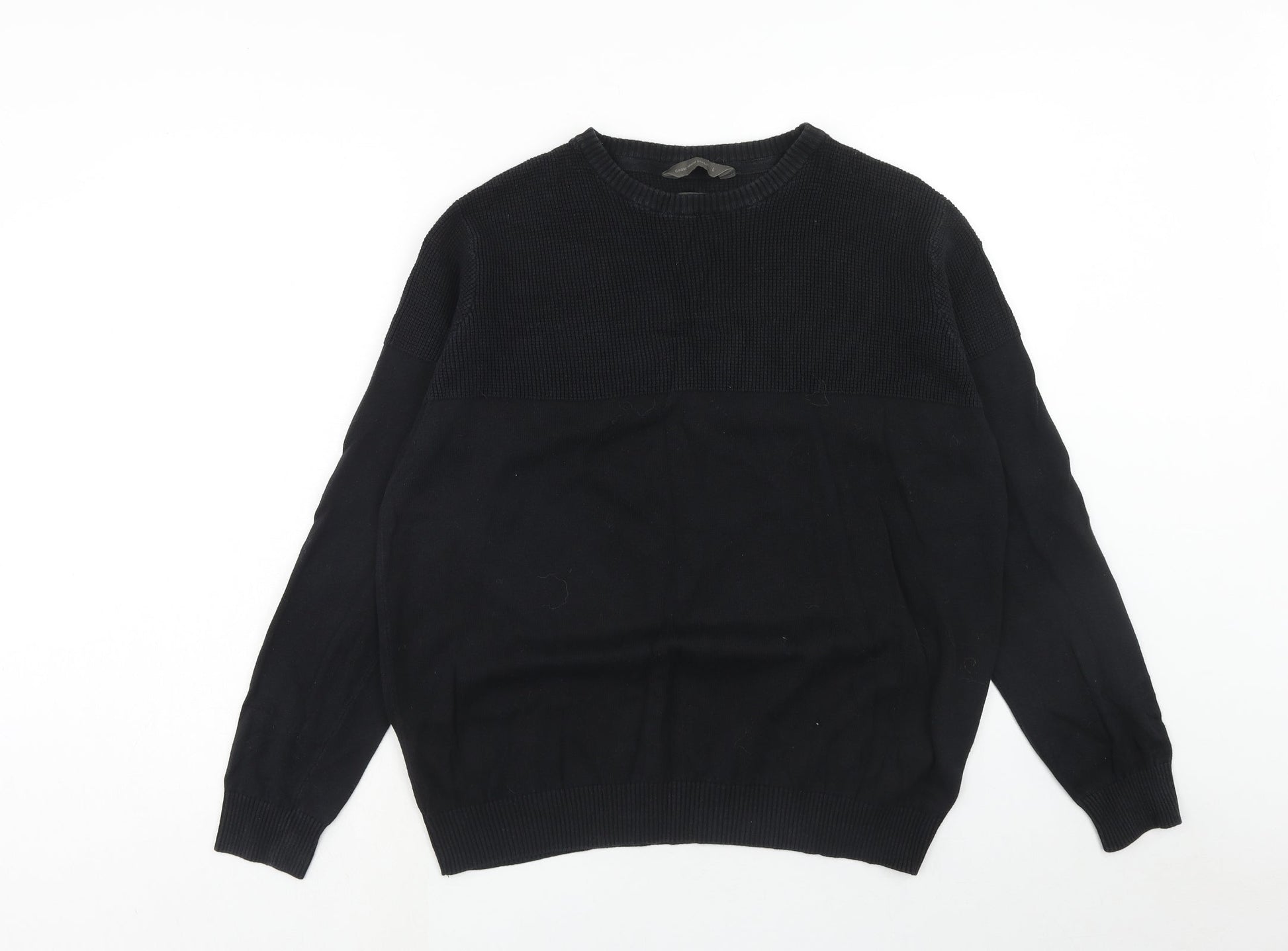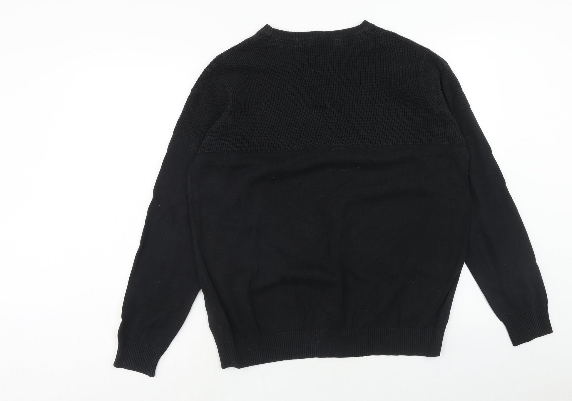 Cedar Wood State Mens Black Round Neck Cotton Pullover Jumper Size L Long Sleeve