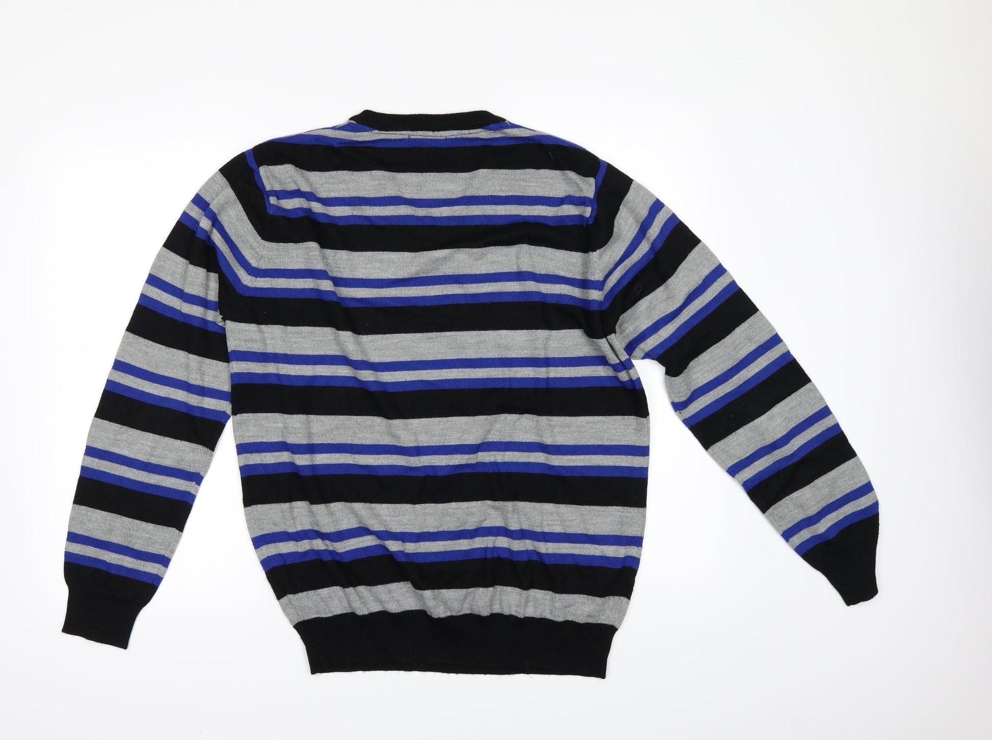 Cedar Wood State Mens Black Striped Pullover Jumper Size L