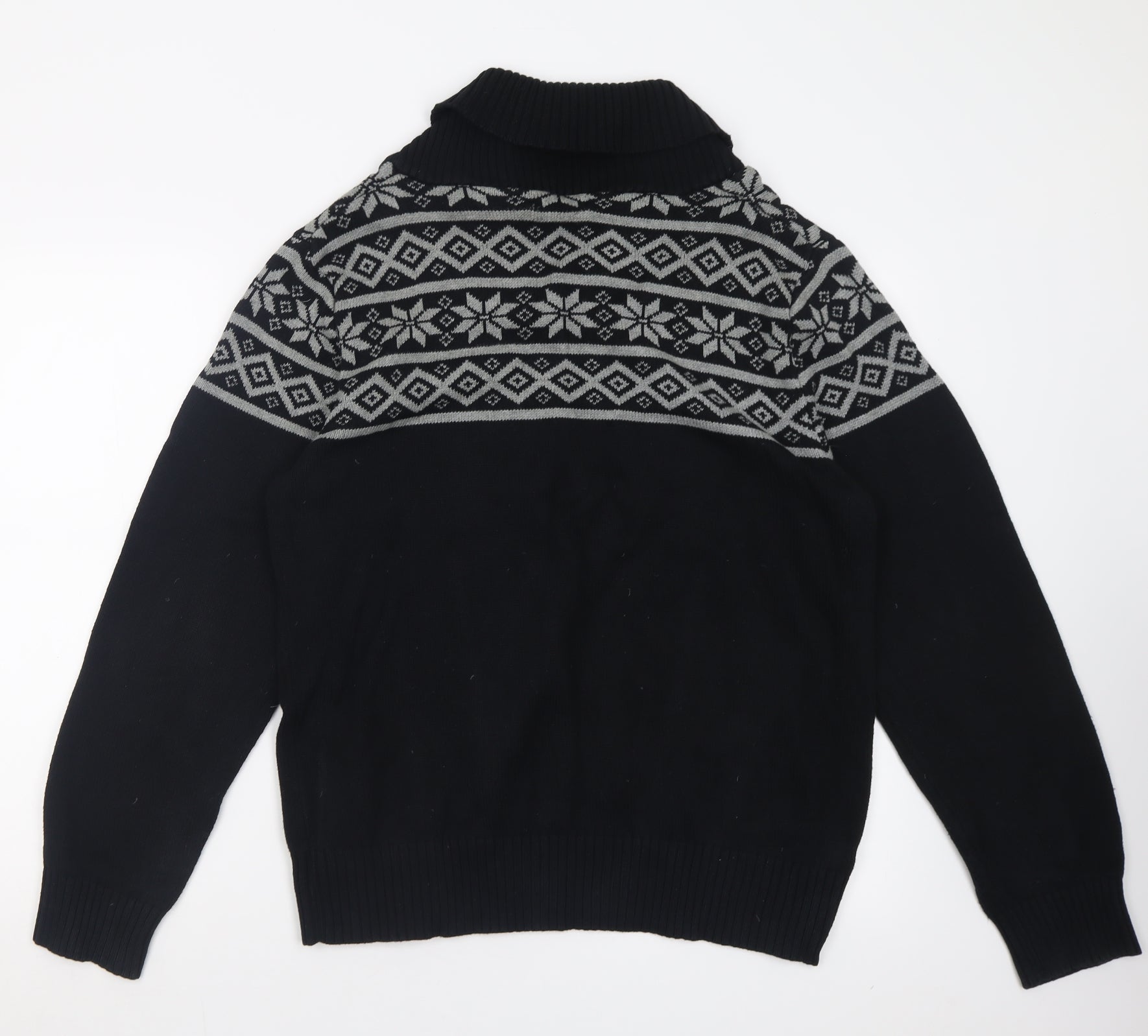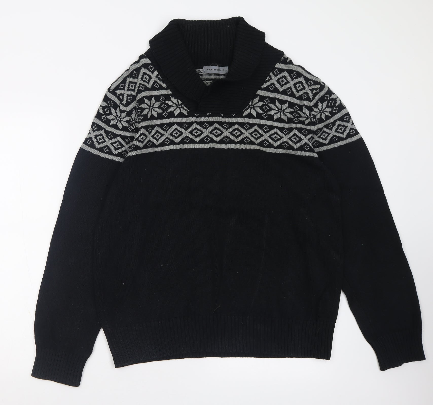 Cedar Wood State Mens Black V-Neck Geometric Cotton Pullover Jumper Size L