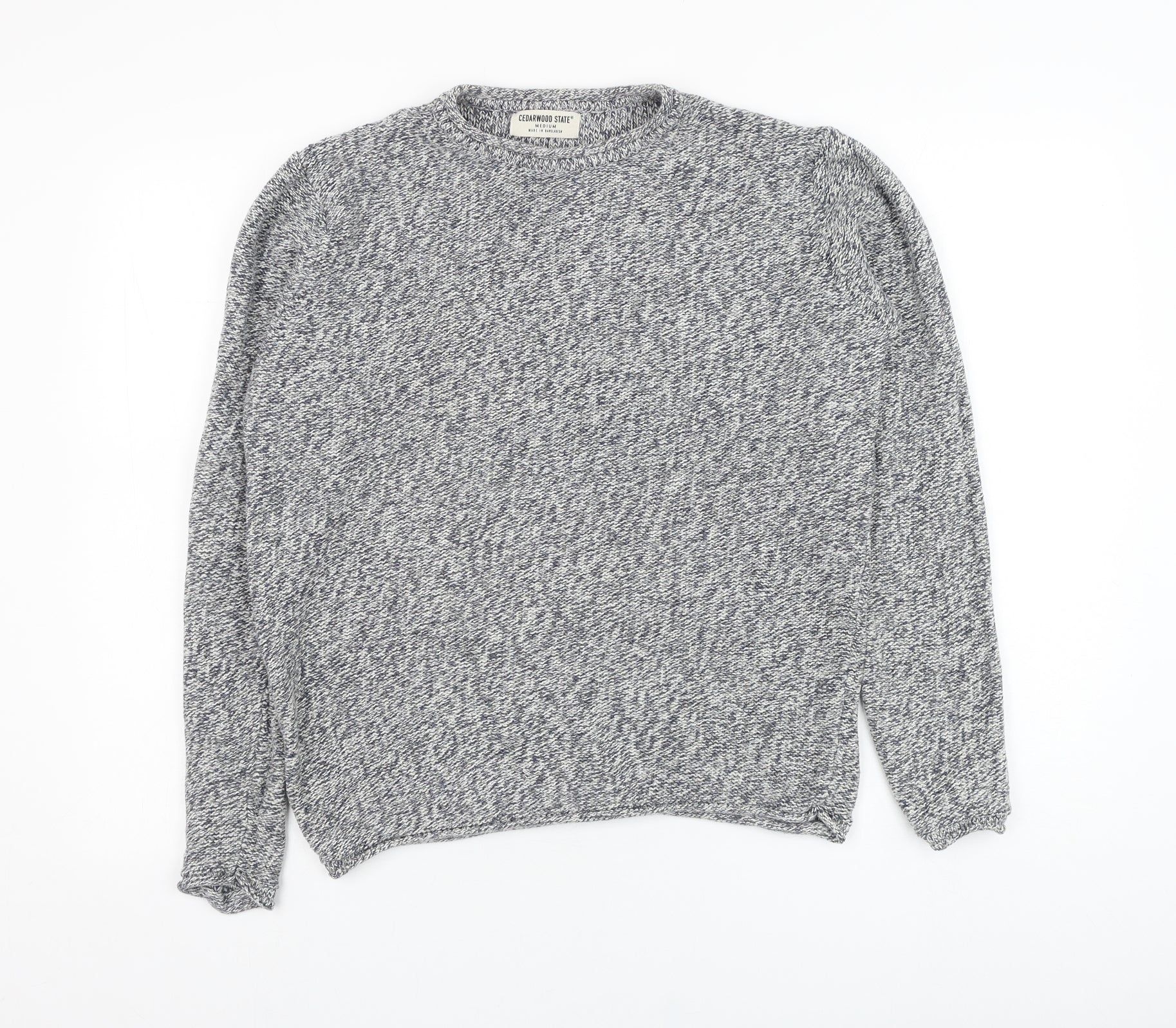 Cedar Wood State Mens Blue Round Neck Cotton Pullover Jumper Size M