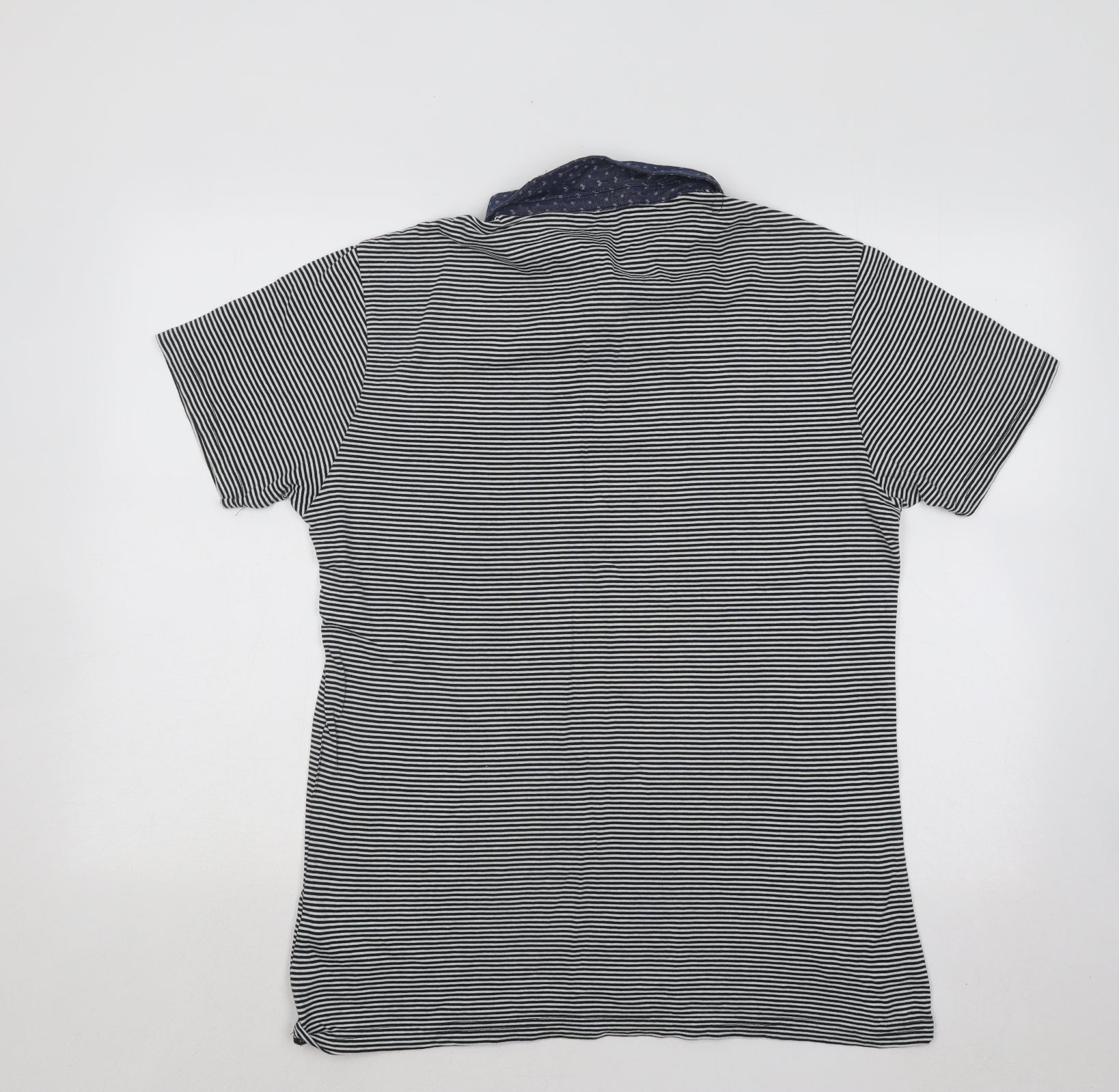 Cedar Wood State Mens Blue Striped Cotton Polo Size M Collared Button