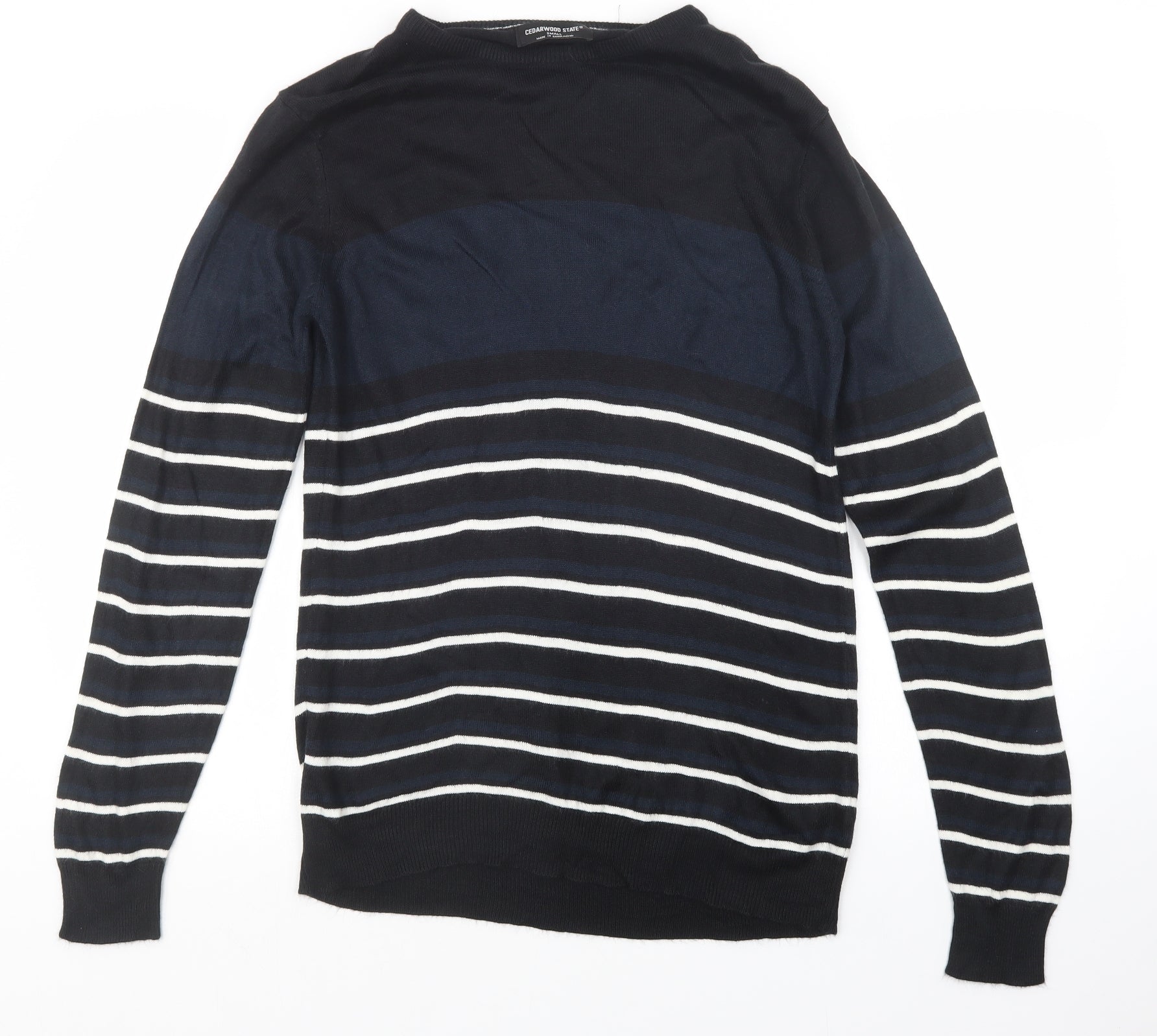Cedar Wood State Mens Blue Striped Knit Pullover Jumper Size S